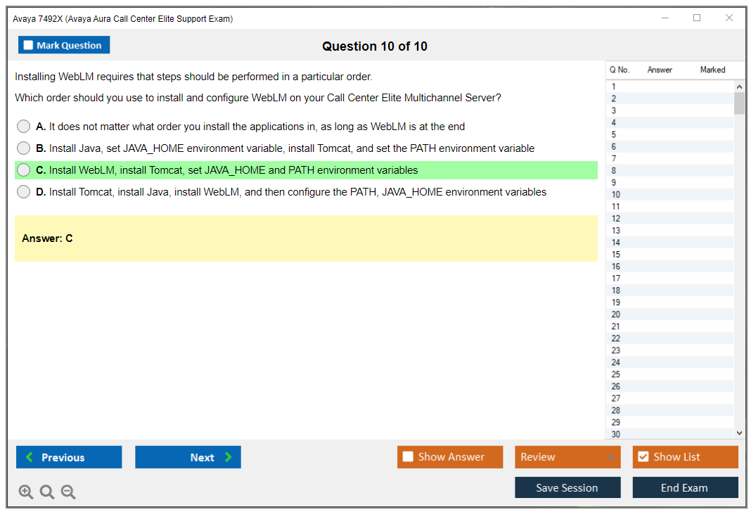 The Avaya 7492X (Avaya Aura® Call Center Elite Support Exam) is designed to validate the knowledge and skills of individuals in supporting Avaya Aura® Call Center Elite solutions. This exam covers various aspects of installation, configuration, maintenance, and troubleshooting of Avaya Aura® Call Center Elite systems.