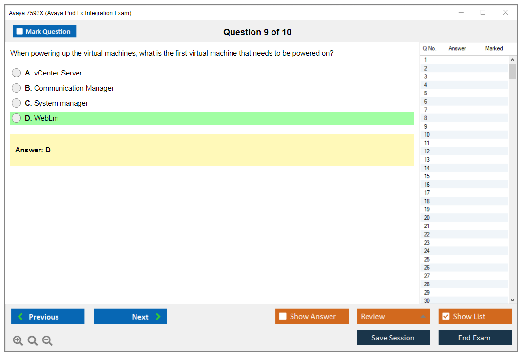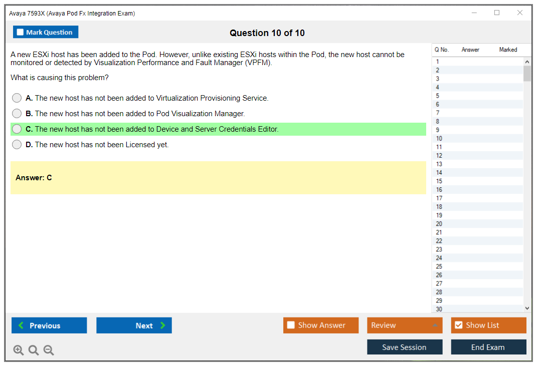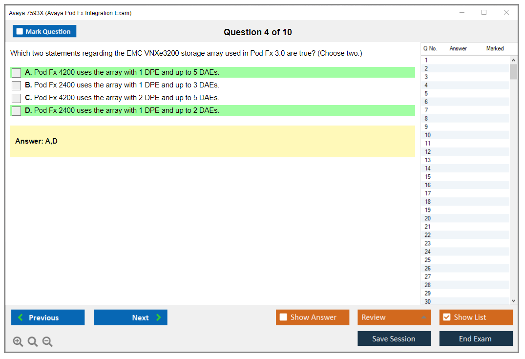 The Avaya 7593X (Avaya Pod Fx Integration Exam) is a certification exam designed to validate the knowledge and skills of professionals in integrating Avaya Pod Fx solutions.