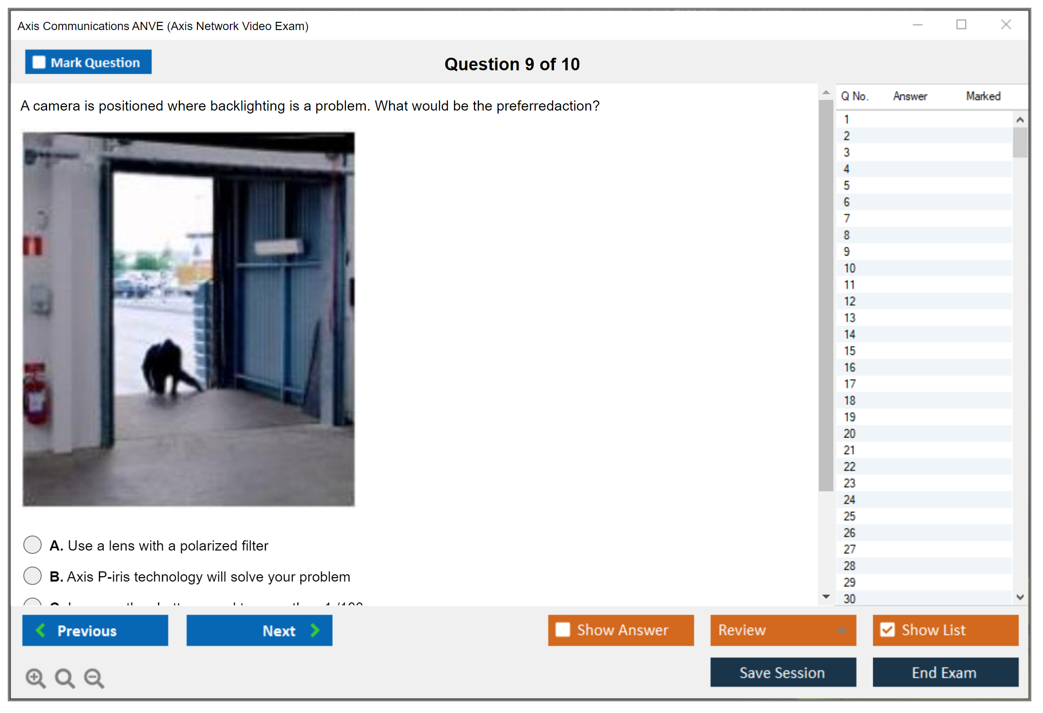 Eleve suas habilidades de vigilância com o DumpsBoss – o melhor recurso para dominar o Exame ANVE da Axis Communications. Acesse um conjunto abrangente de materiais de estudo, garantindo que você esteja bem preparado para se destacar na certificação do Exame de Vídeo em Rede da Axis.