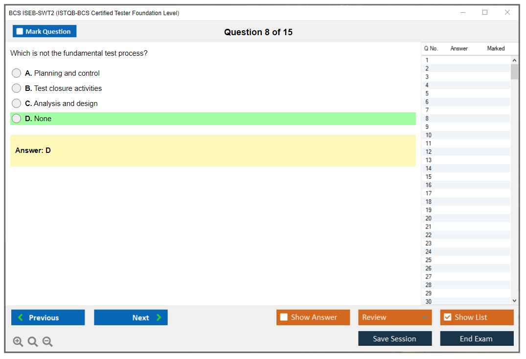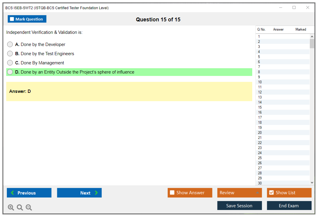 The BCS ISEB-SWT2 (ISTQB-BCS Certified Tester Foundation Level) Exam is a certification exam designed to validate a candidate's knowledge and skills in software testing. It is recognized globally and provides a solid foundation for a career in software testing.