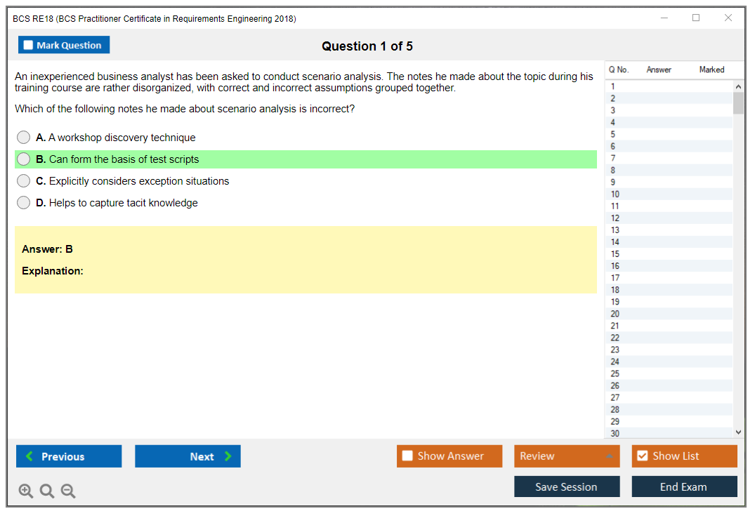 RE18 (BCS Practitioner Certificate in Requirements Engineering 2018) PDF + Test Engine