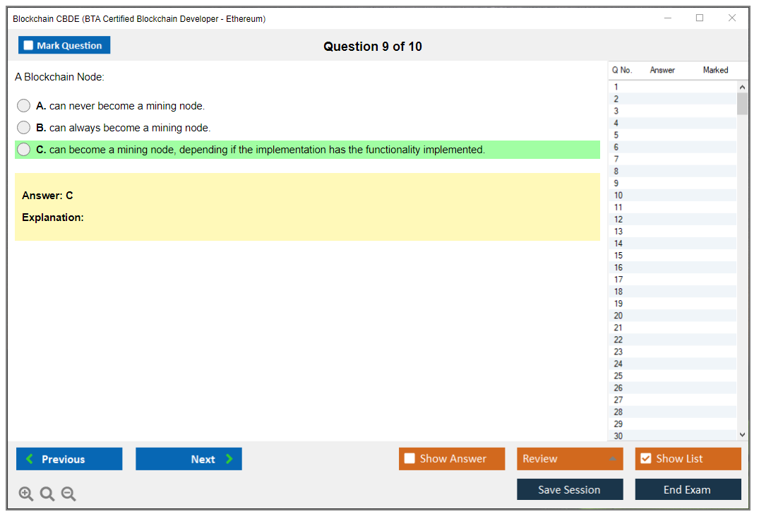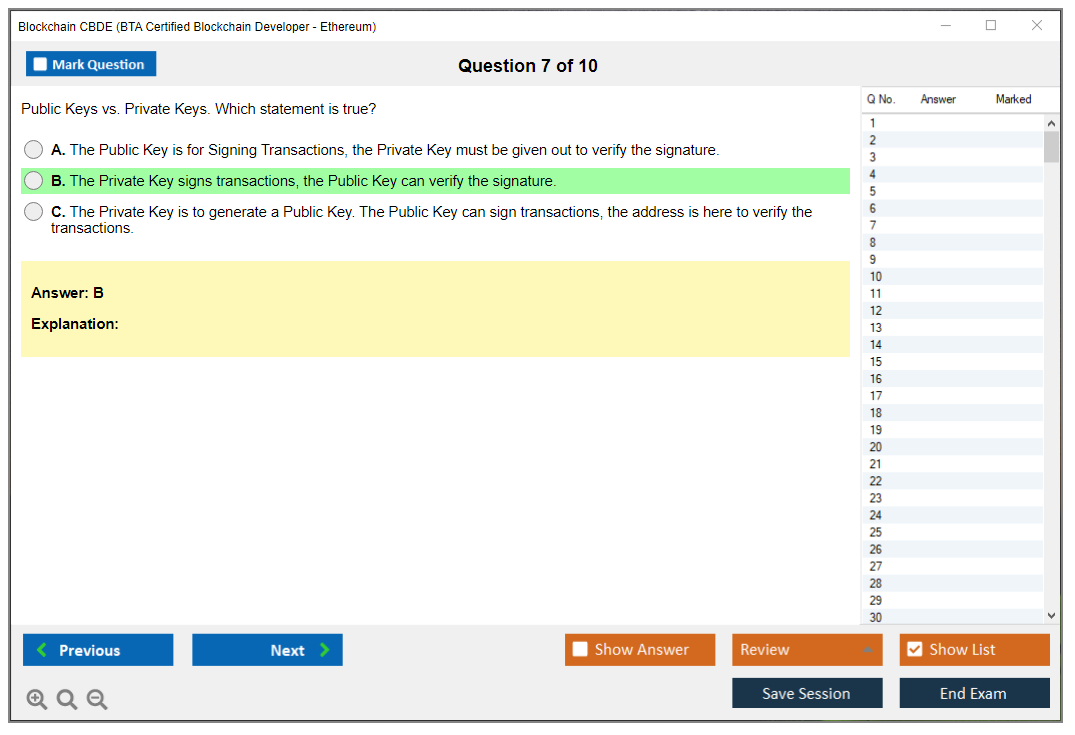 The Blockchain CBDE Exam consists of 70 multiple-choice questions.