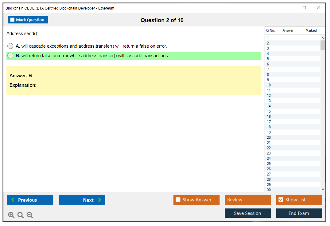 The Blockchain CBDE Exam is a certification exam provided by the Blockchain Training Alliance (BTA) aimed at validating the skills and knowledge of developers in the area of Ethereum blockchain technology.