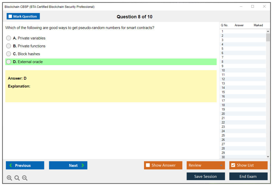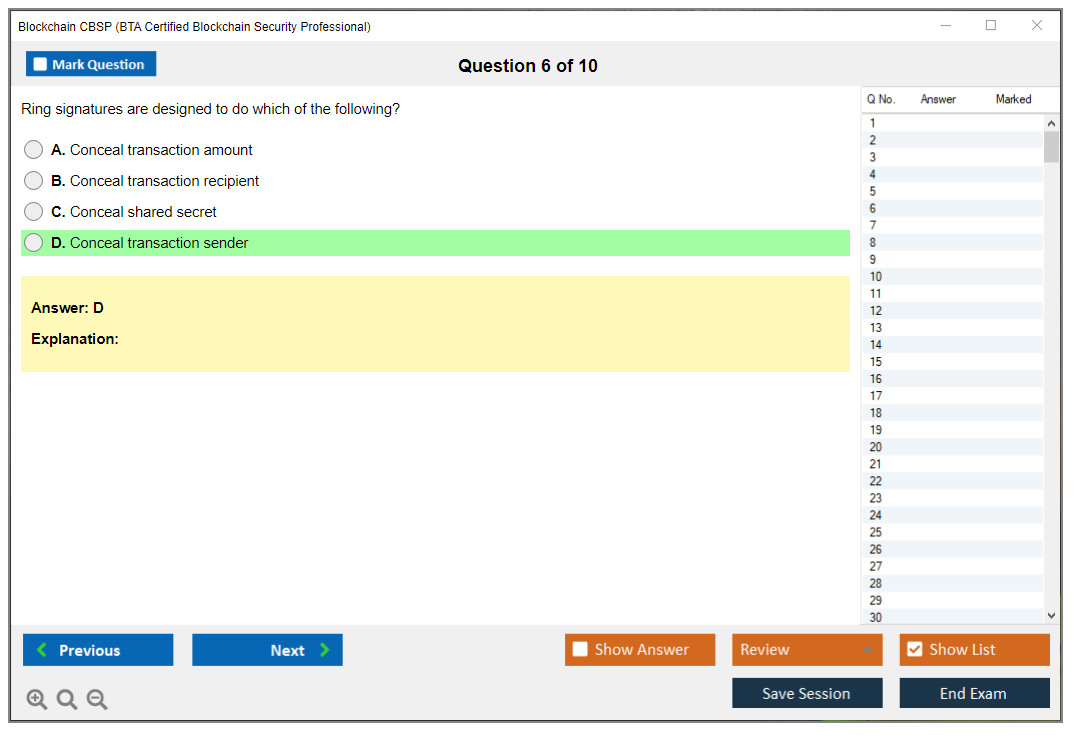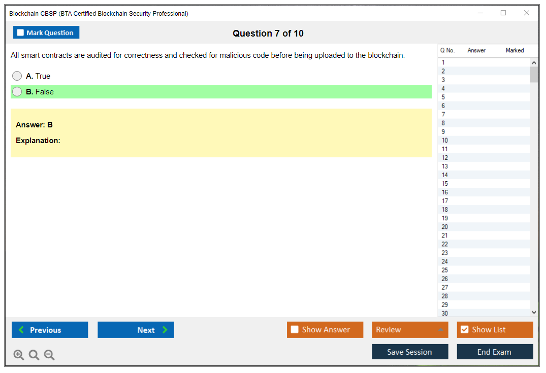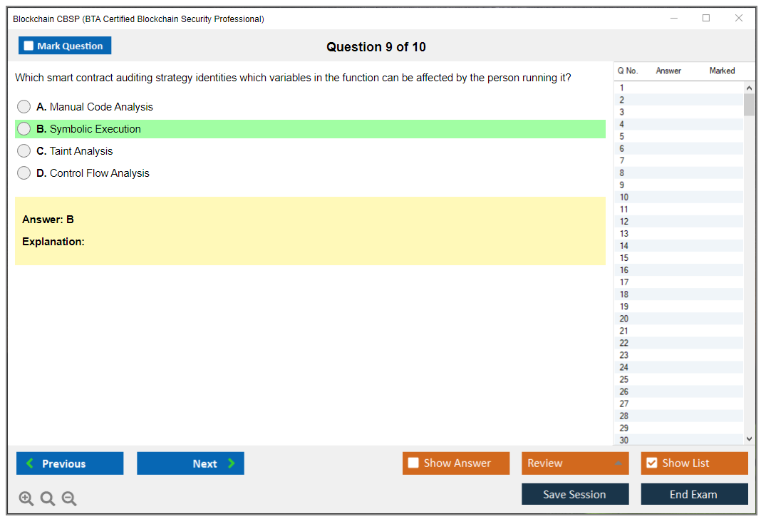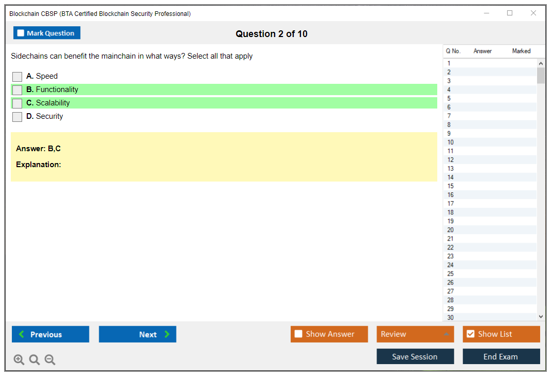 The Blockchain CBSP (BTA Certified Blockchain Security Professional) Exam is a certification exam designed to validate the knowledge and skills of individuals in blockchain security. It focuses on various aspects of blockchain technology, including its architecture, cryptography, and security best practices.