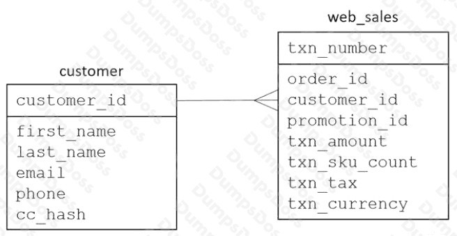 A data analytics specialist must provide access to a new business analyst team. The team will use Amazon Athena from the AWS Management Console to query data from existing web_sales and customer tables in the ecommerce database. The team needs read-only access and the ability to uniquely identify customers by using first and last names. However, the team must not be able to see any other personally identifiable data. The table structure is as follows: