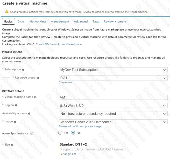 You plan to create an Azure virtual machine named VM1 that will be configured as shown in the following exhibit.