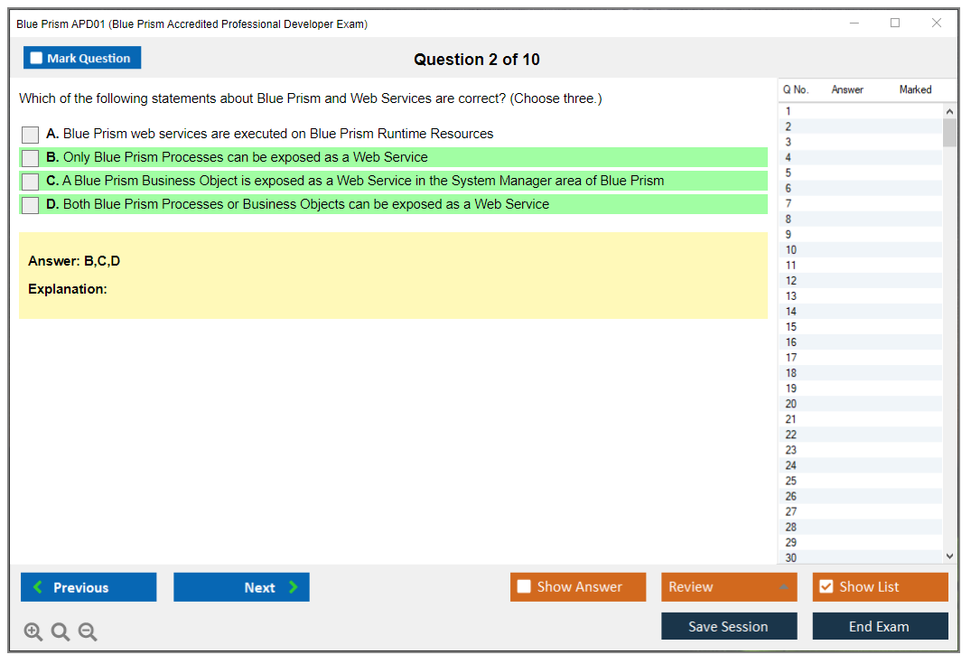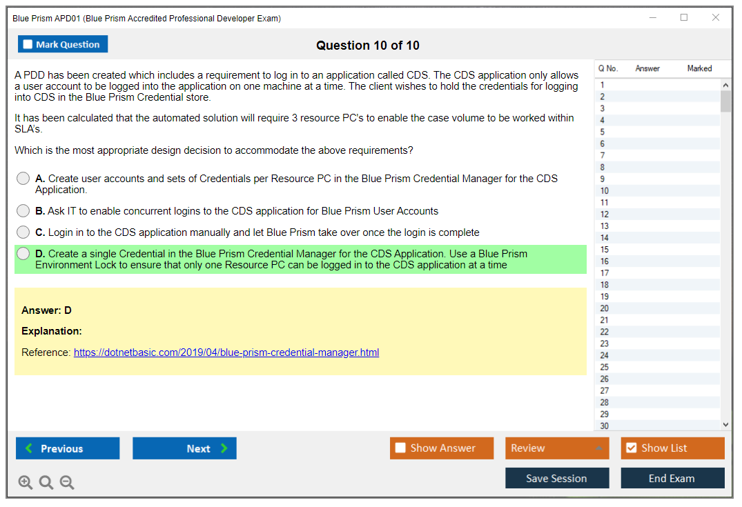 DumpsBoss excels with Blue Prism APD01! Clear explanations and comprehensive content simplify complex Blue Prism development concepts.