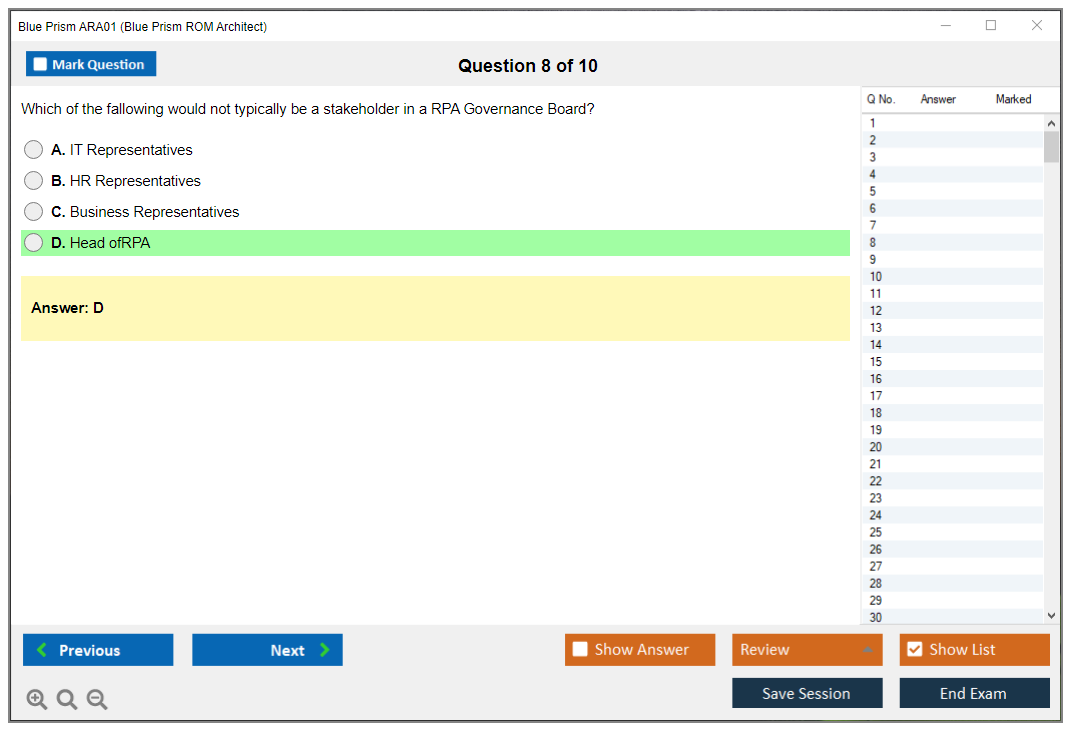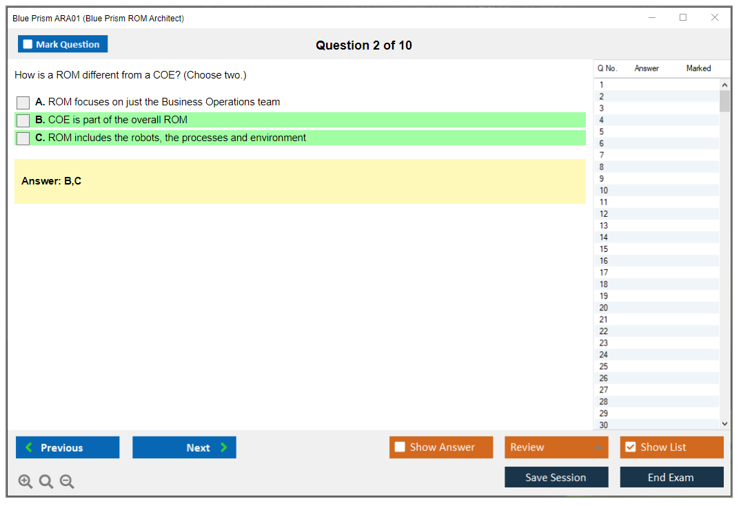 What is the Question Format of Blue Prism ARA01 Exam?