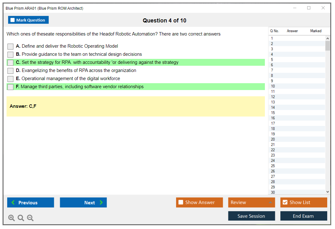 What are the Sample Questions of Blue Prism ARA01 Exam?