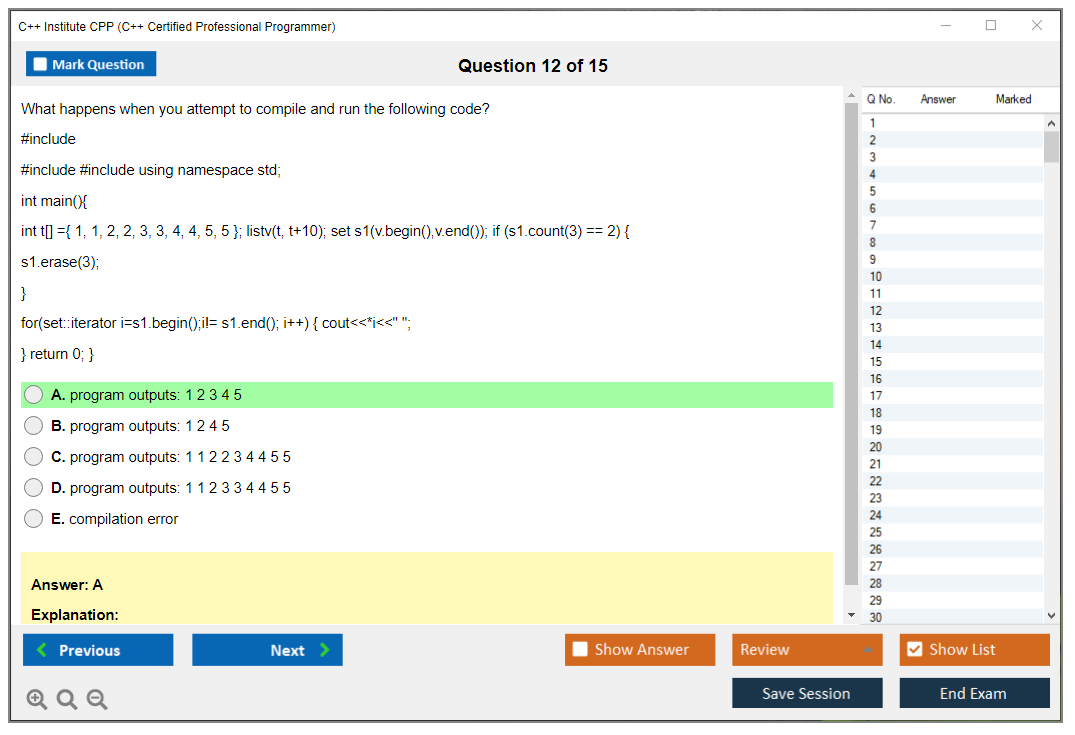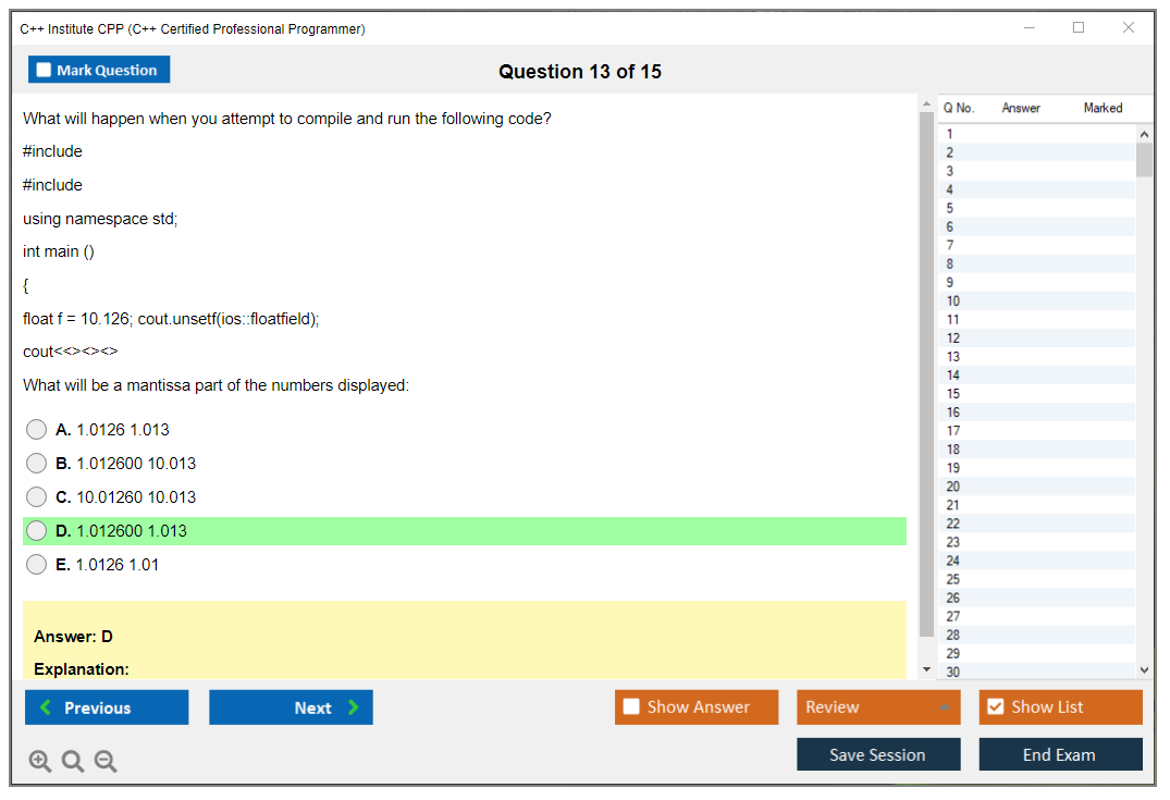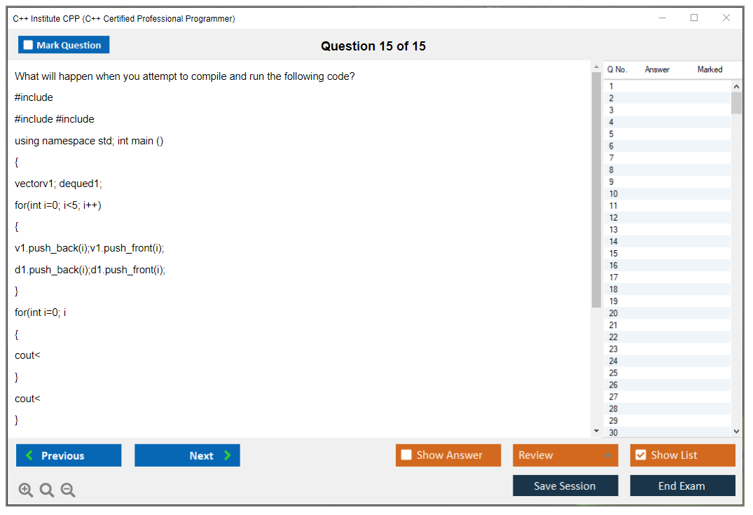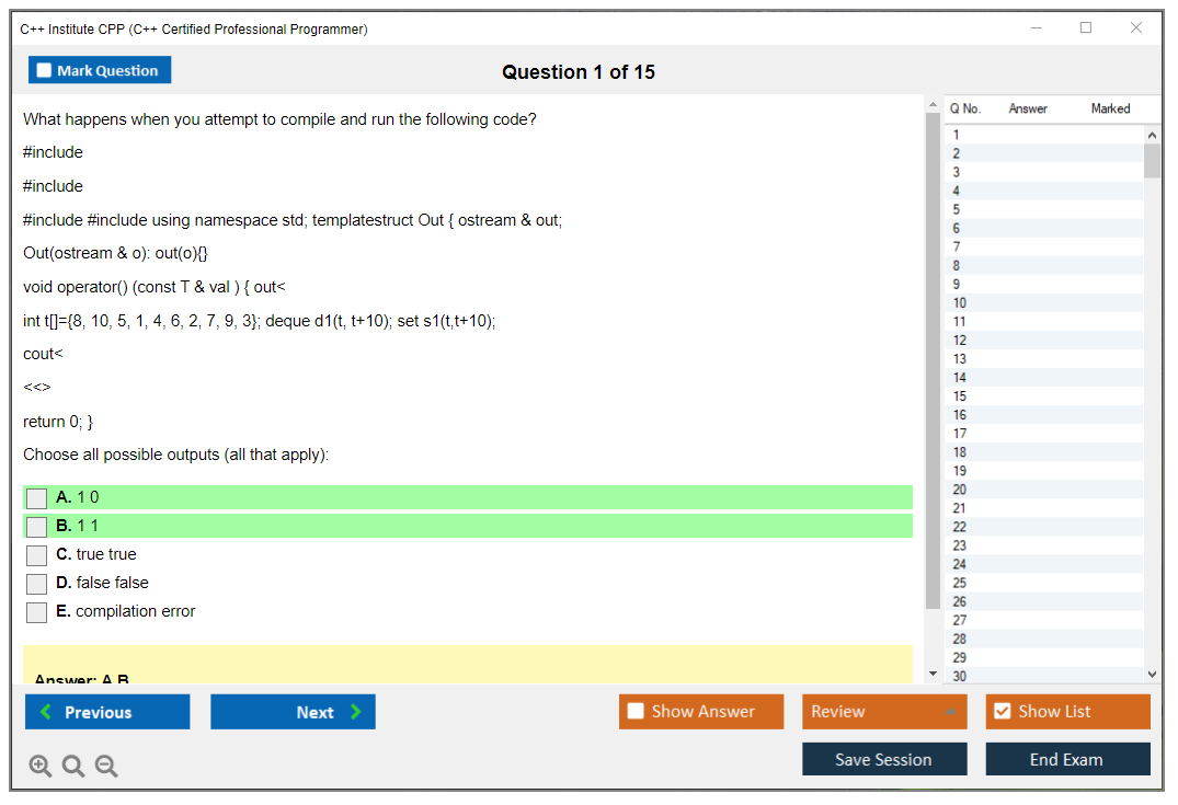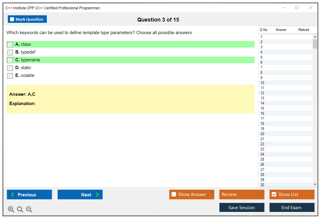 The question format of the C++ Institute CPP Exam includes multiple-choice questions, with both single and multiple correct answers.
