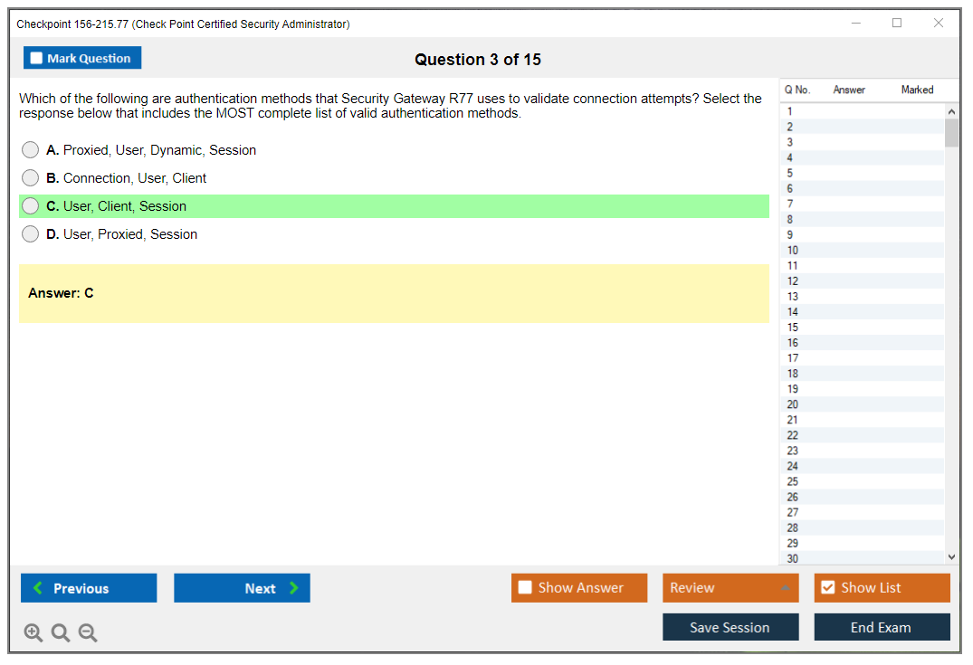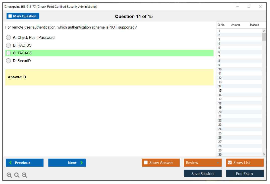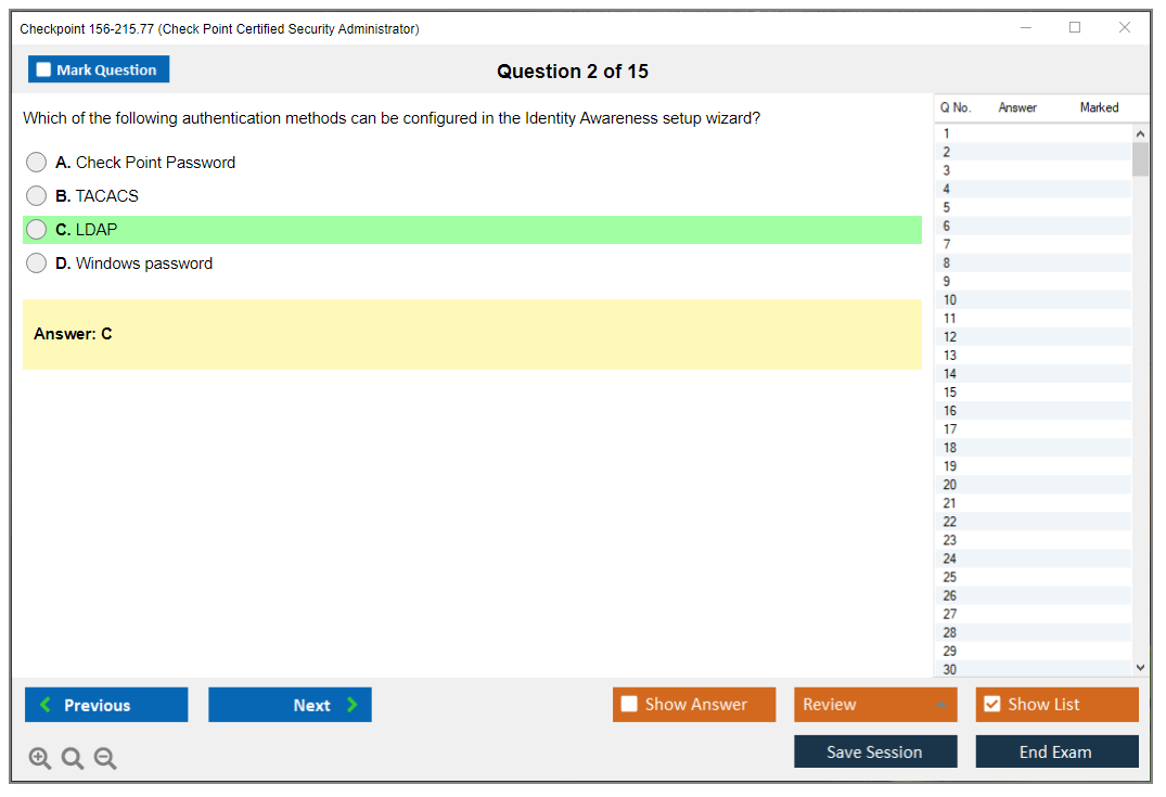 The question format of the Checkpoint 156-215.77 Exam includes multiple-choice questions, multiple response questions, and scenario-based questions.