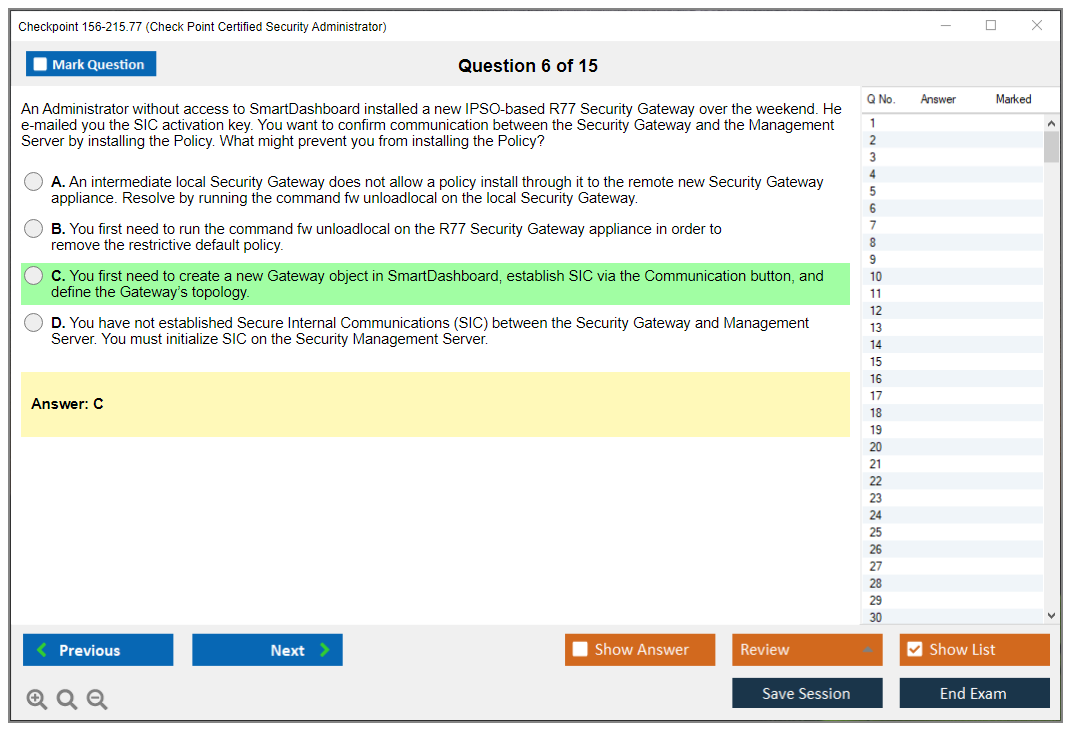 The Checkpoint 156-215.77 (Check Point Certified Security Administrator) Exam is designed to validate the skills and knowledge of professionals in managing and supporting Check Point Security solutions.