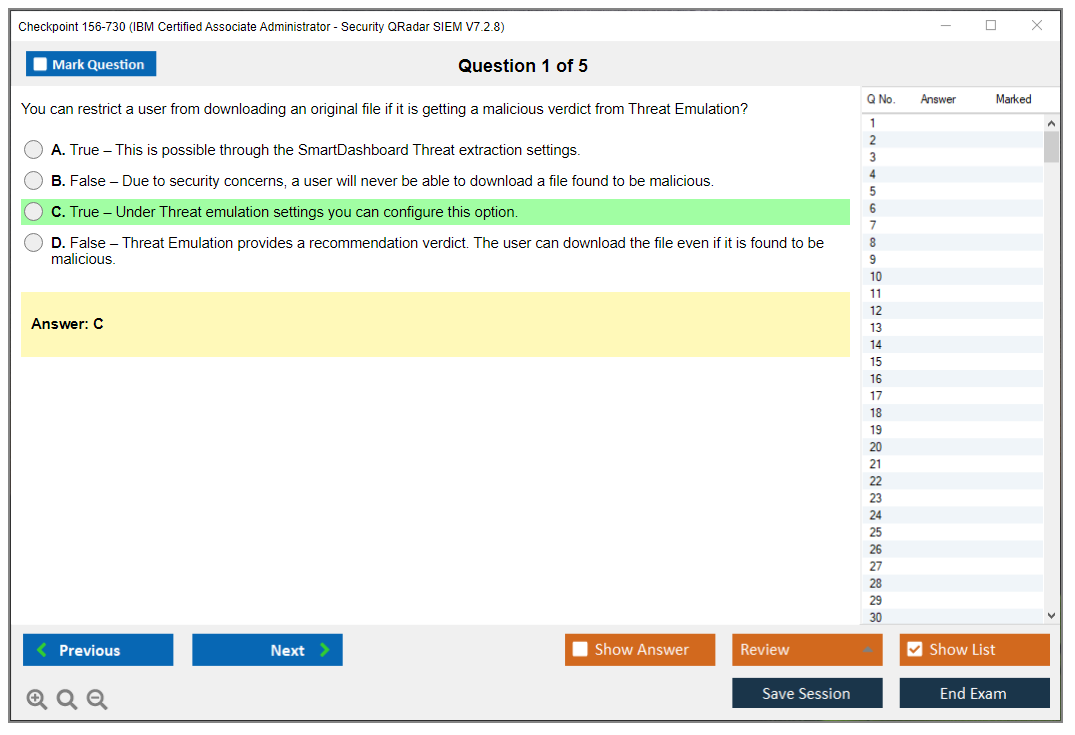 The Checkpoint 156-730 (IBM Certified Associate Administrator - Security QRadar SIEM V7.2.8) Exam is designed to validate the skills and knowledge of individuals in administering IBM Security QRadar SIEM V7.2.8. This includes tasks such as configuring, managing, and troubleshooting the QRadar SIEM solution.