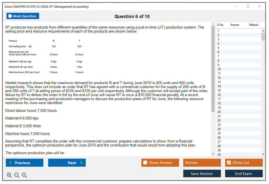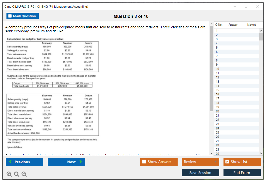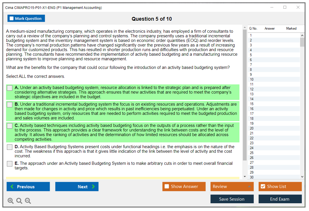 The CIMA CIMAPRO15-P01-X1-ENG (P1 Management Accounting) exam is part of the Chartered Institute of Management Accountants (CIMA) certification pathway. It focuses on management accounting principles and practices, including cost management, budgeting, and forecasting.