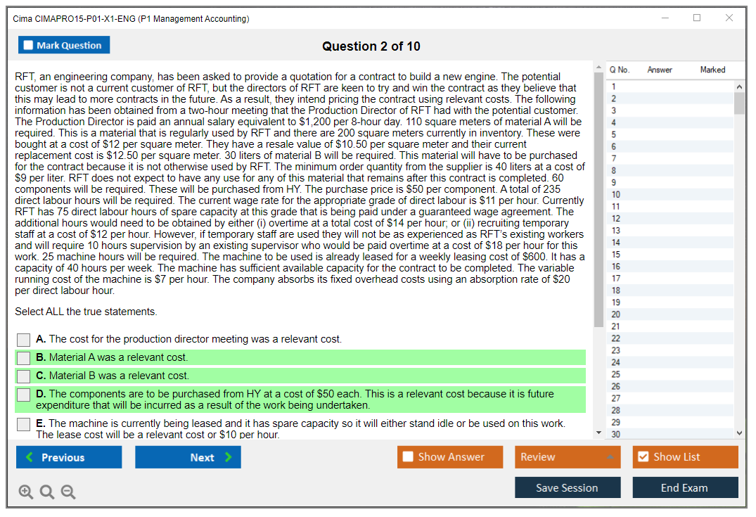 What are the Sample Questions of Cima CIMAPRO15-P01-X1-ENG Exam?
