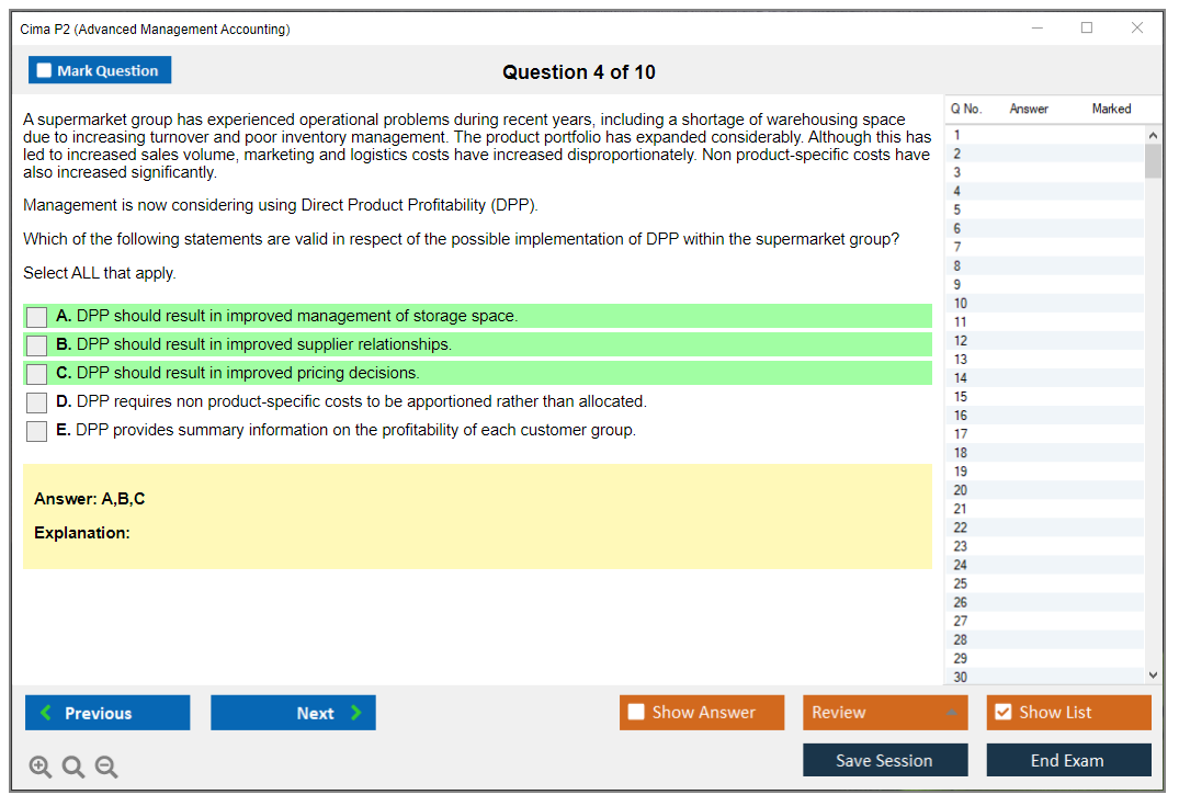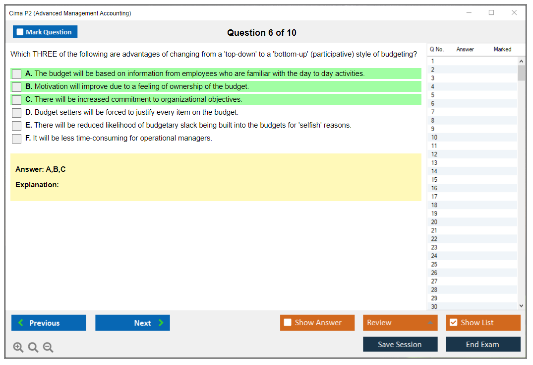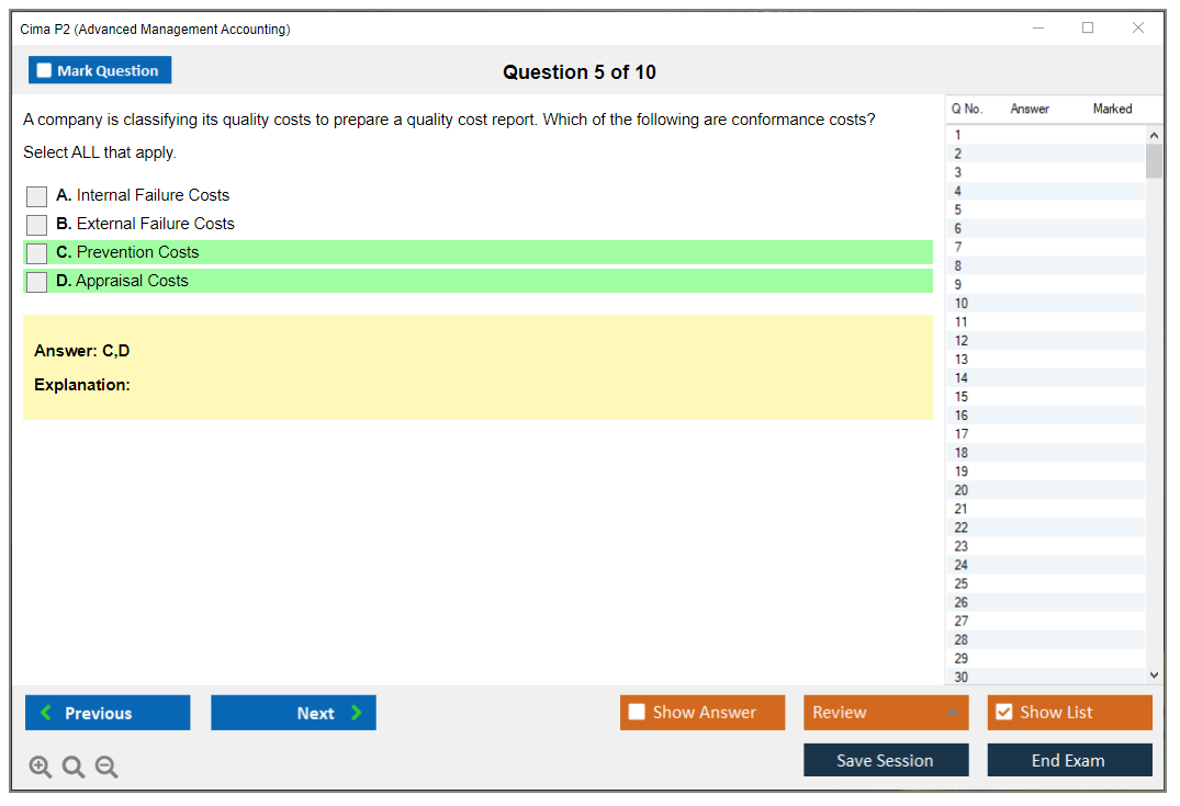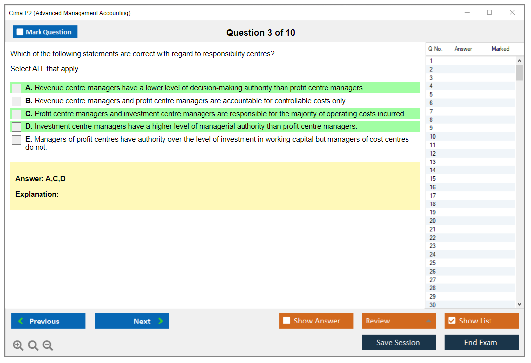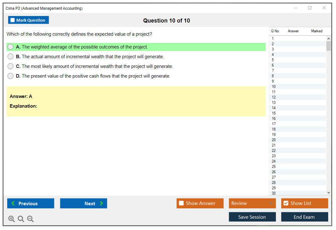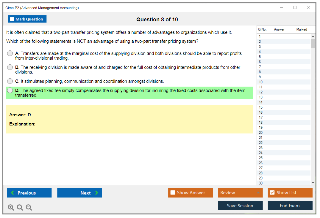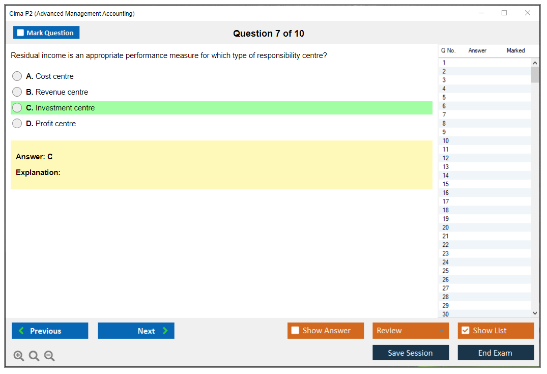 The CIMA P2 (Advanced Management Accounting) Exam is part of the Chartered Institute of Management Accountants (CIMA) qualification framework. It focuses on advanced management accounting techniques, including cost management, budgeting, and performance evaluation. The exam aims to develop strategic decision-making skills and enhance the ability to manage financial resources effectively.