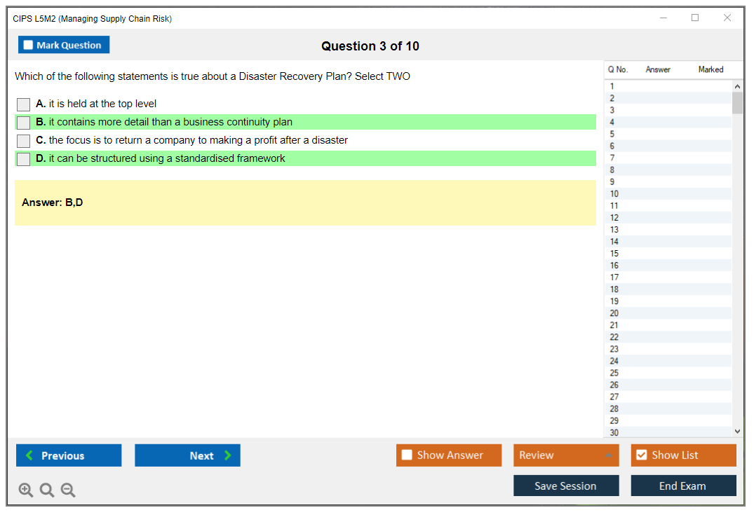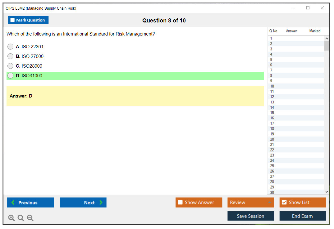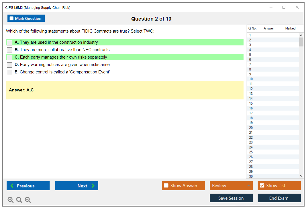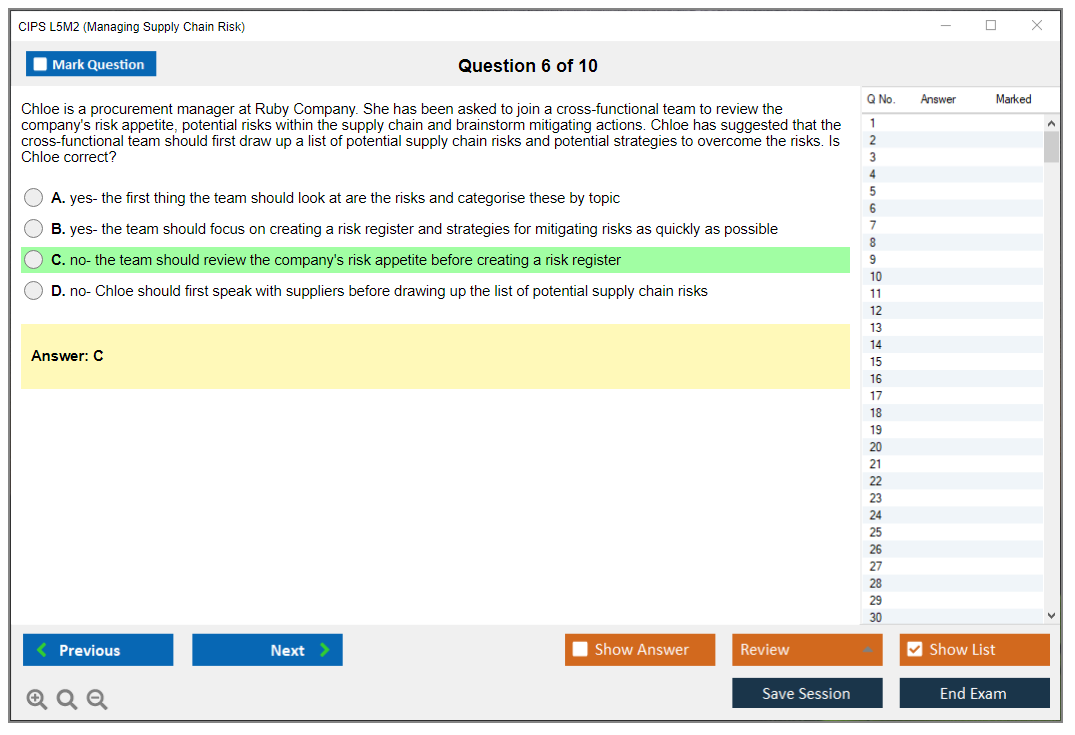 The CIPS L5M2 (Managing Supply Chain Risk) Exam is part of the Chartered Institute of Procurement & Supply (CIPS) Level 5 Advanced Diploma in Procurement and Supply. It focuses on identifying and managing risks within the supply chain to ensure continuity and efficiency.