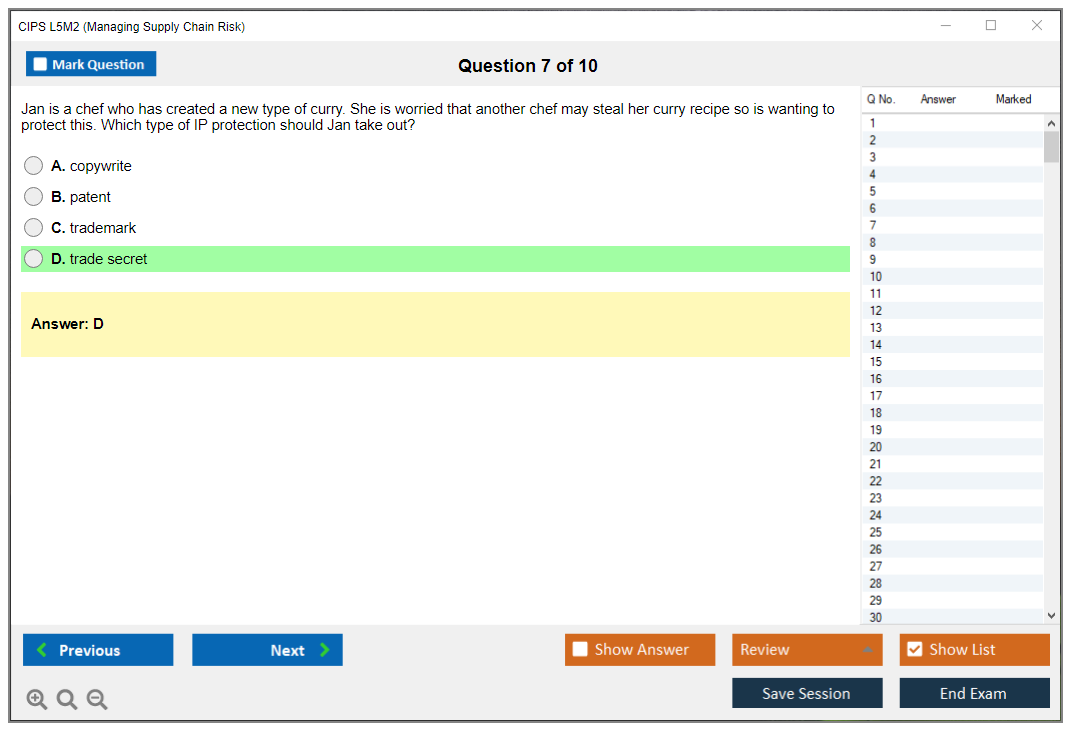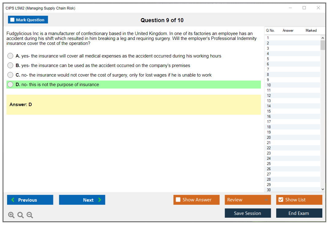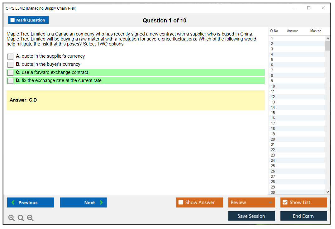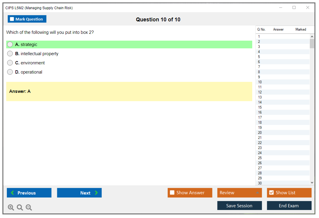 The CIPS L5M2 (Managing Supply Chain Risk) Exam is part of the Chartered Institute of Procurement & Supply (CIPS) Level 5 Advanced Diploma in Procurement and Supply. It focuses on identifying and managing risks within the supply chain to ensure continuity and efficiency.