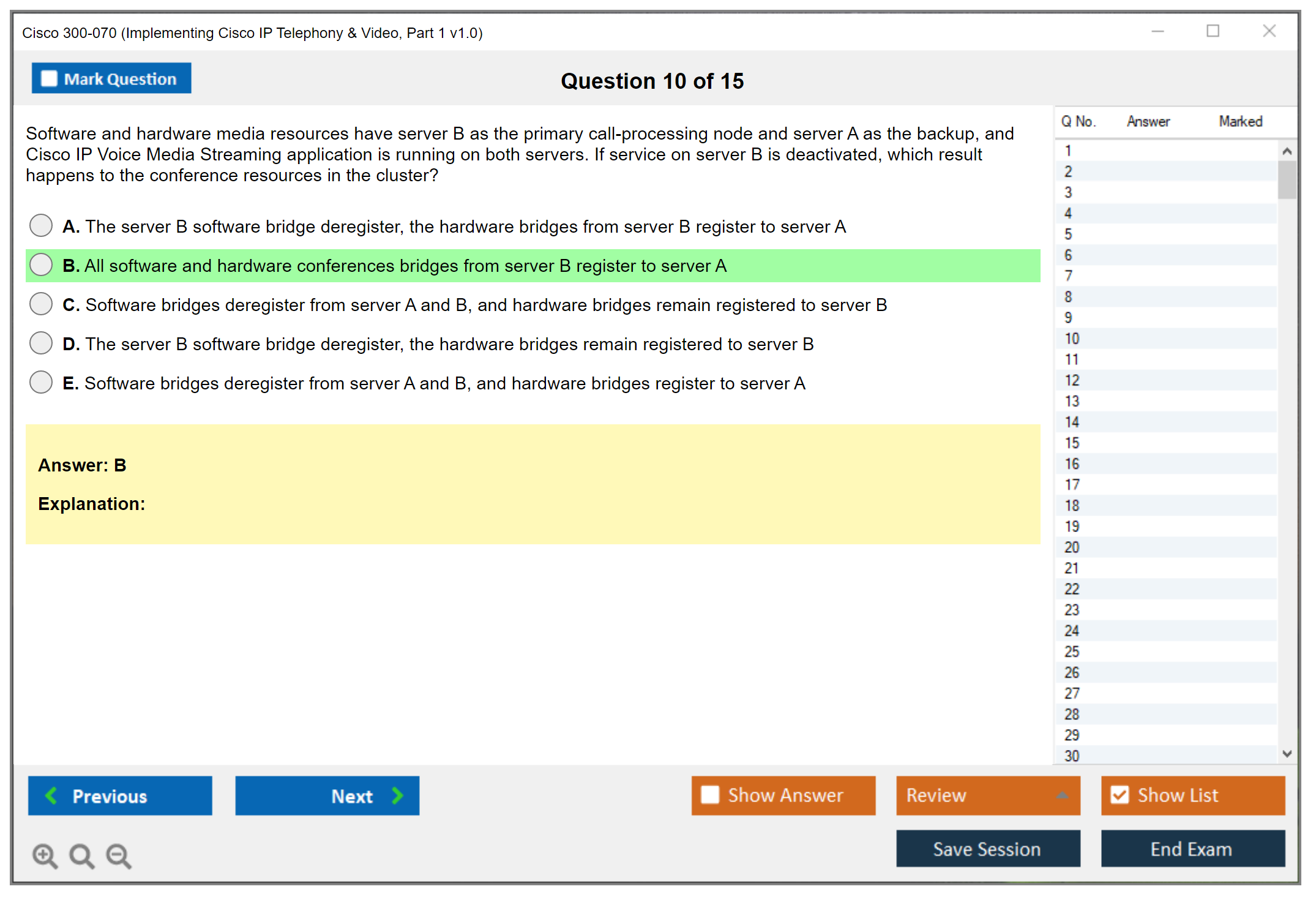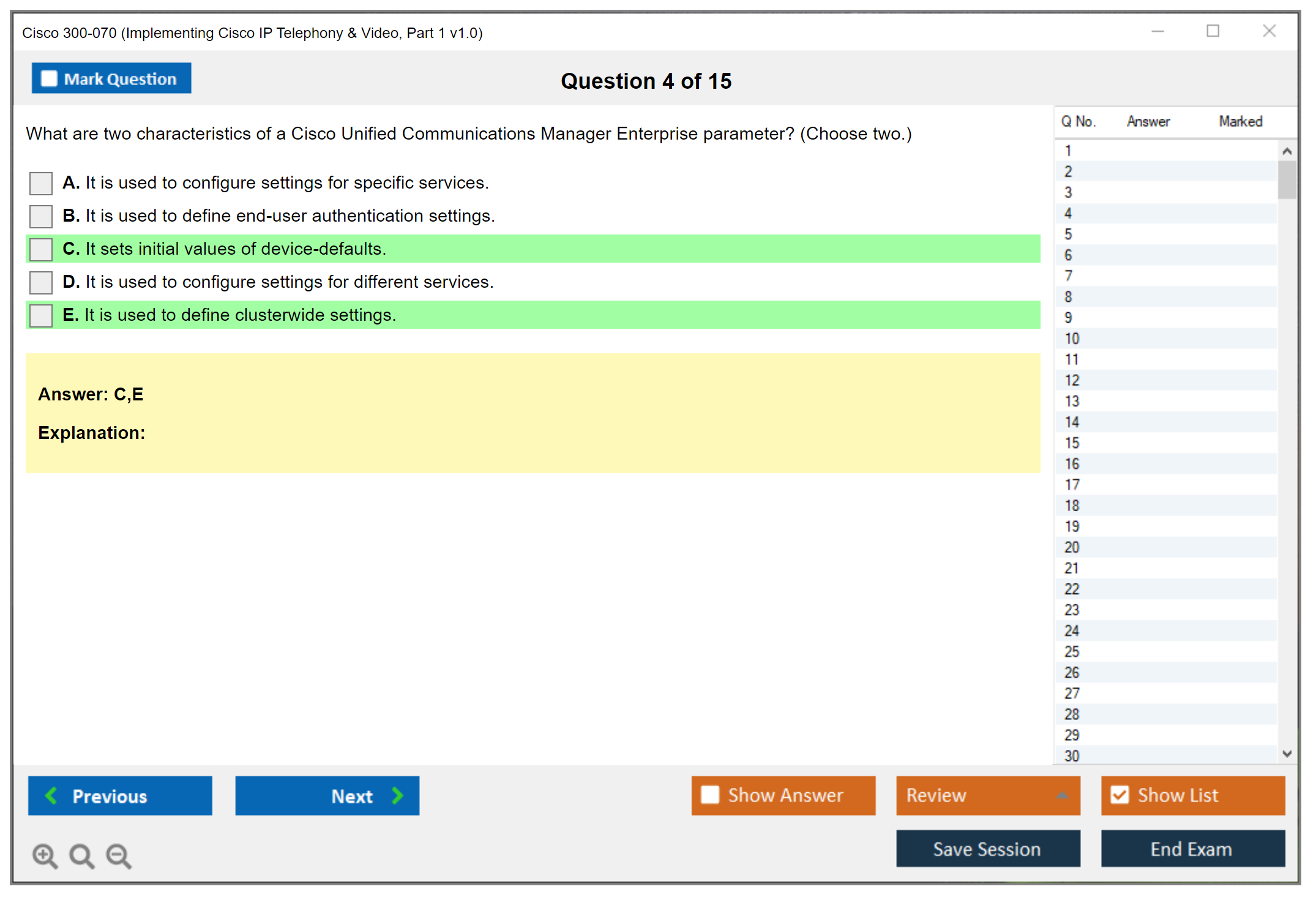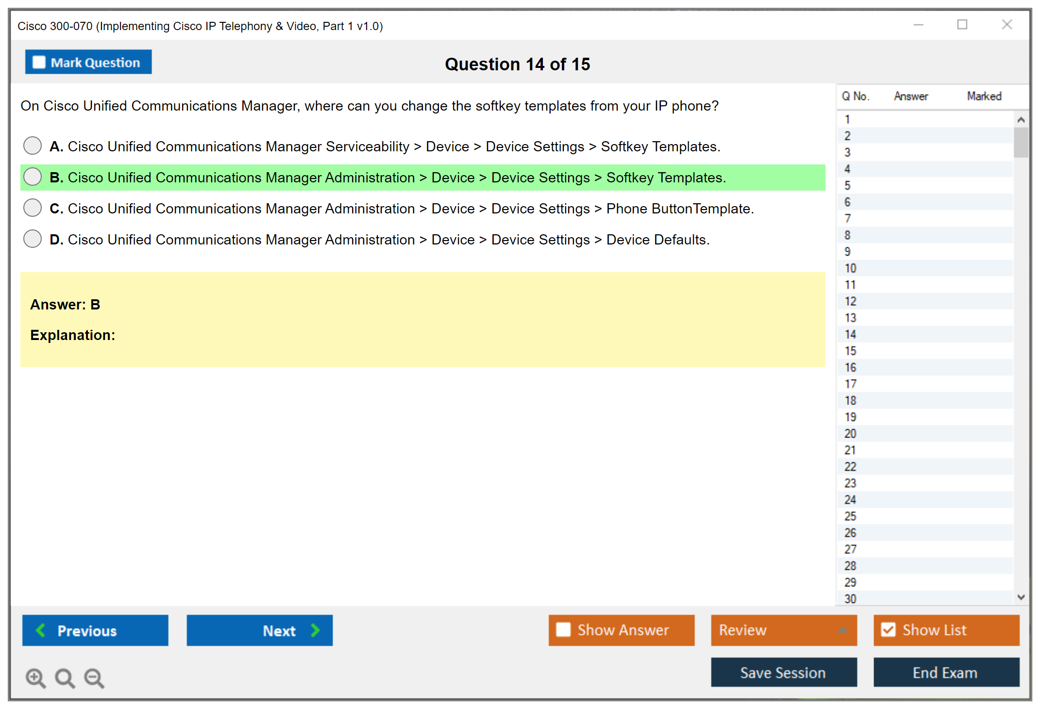 Note: Cisco 300-070 (Implementing Cisco IP Telephony & Video, Part 1 v1.0) will not receive any new updates.