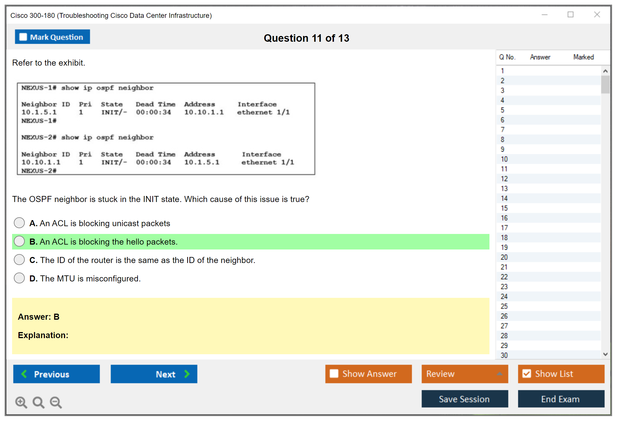 Note: Cisco 300-180 (Troubleshooting Cisco Data Center Infrastructure) will not receive any new updates.