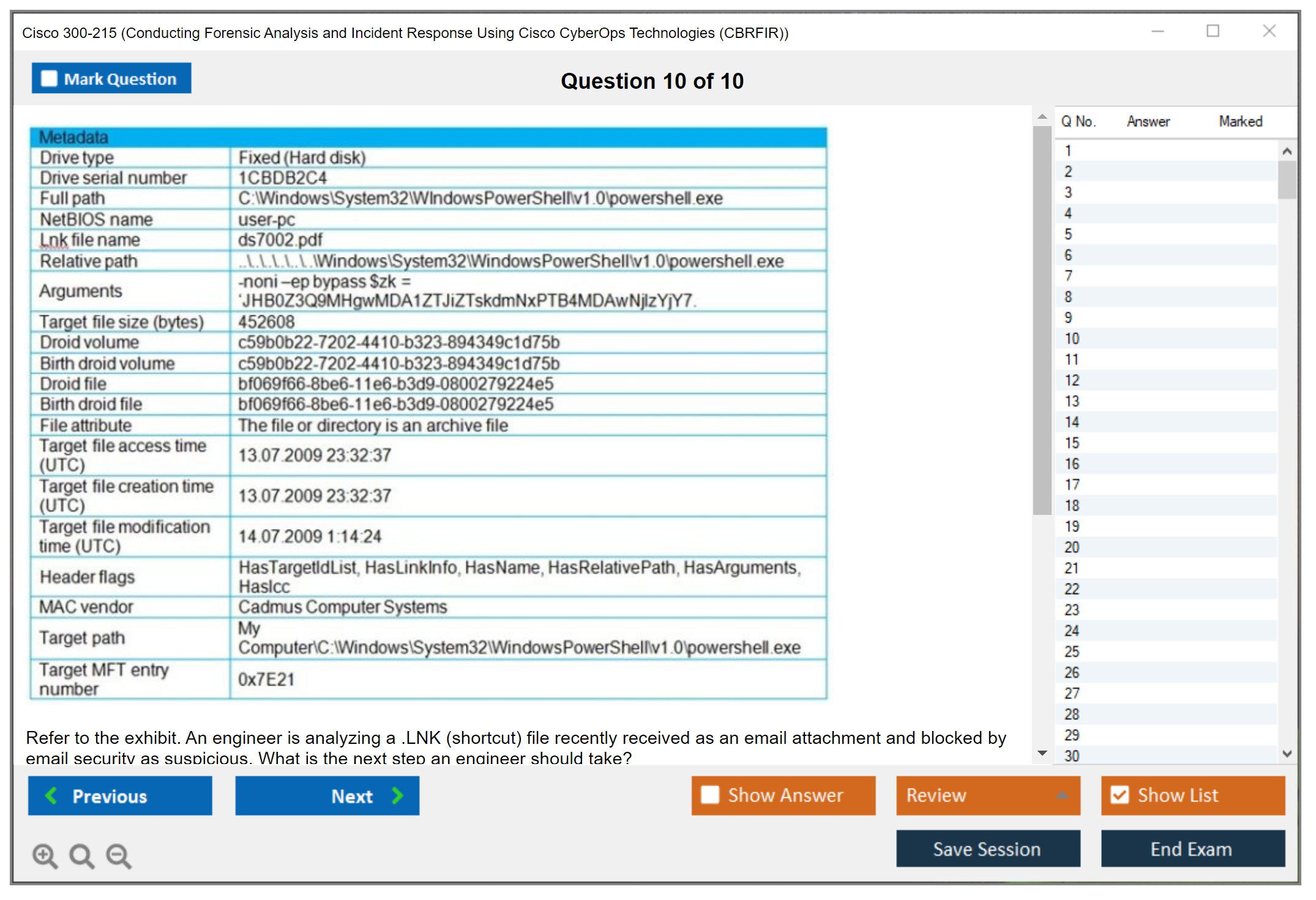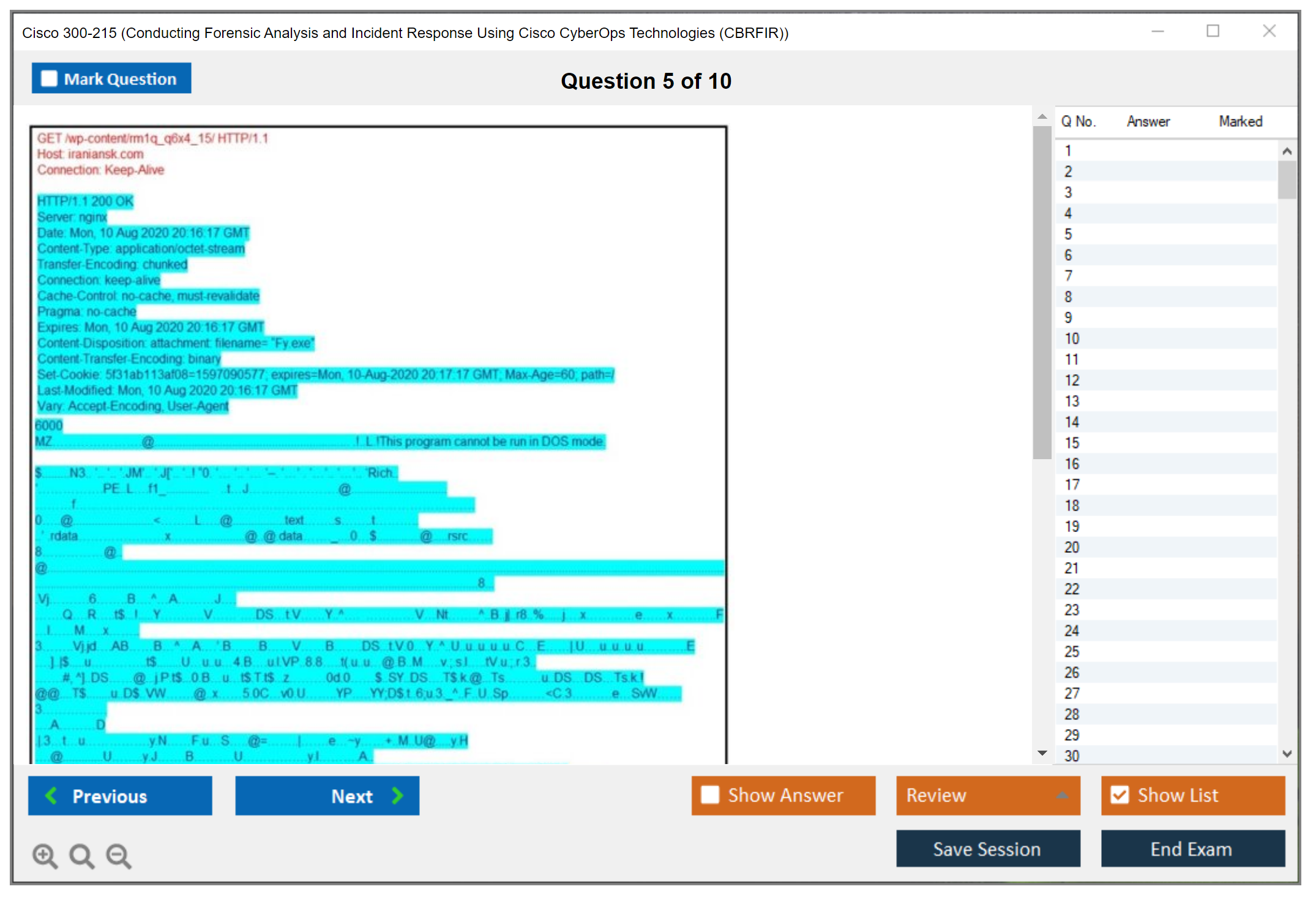 Sample questions for the Cisco 300-215 exam can be found on Cisco's official website or through various exam preparation resources and study guides.