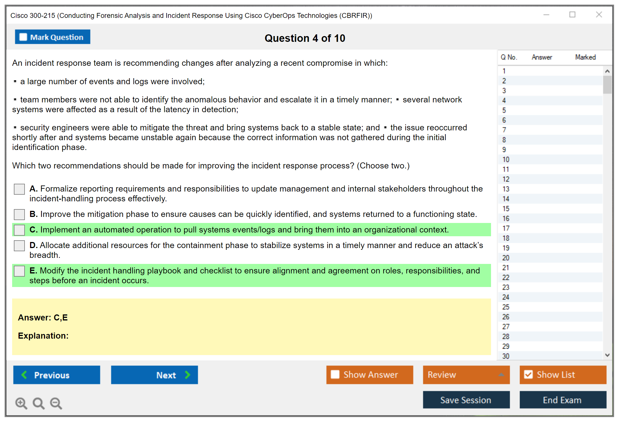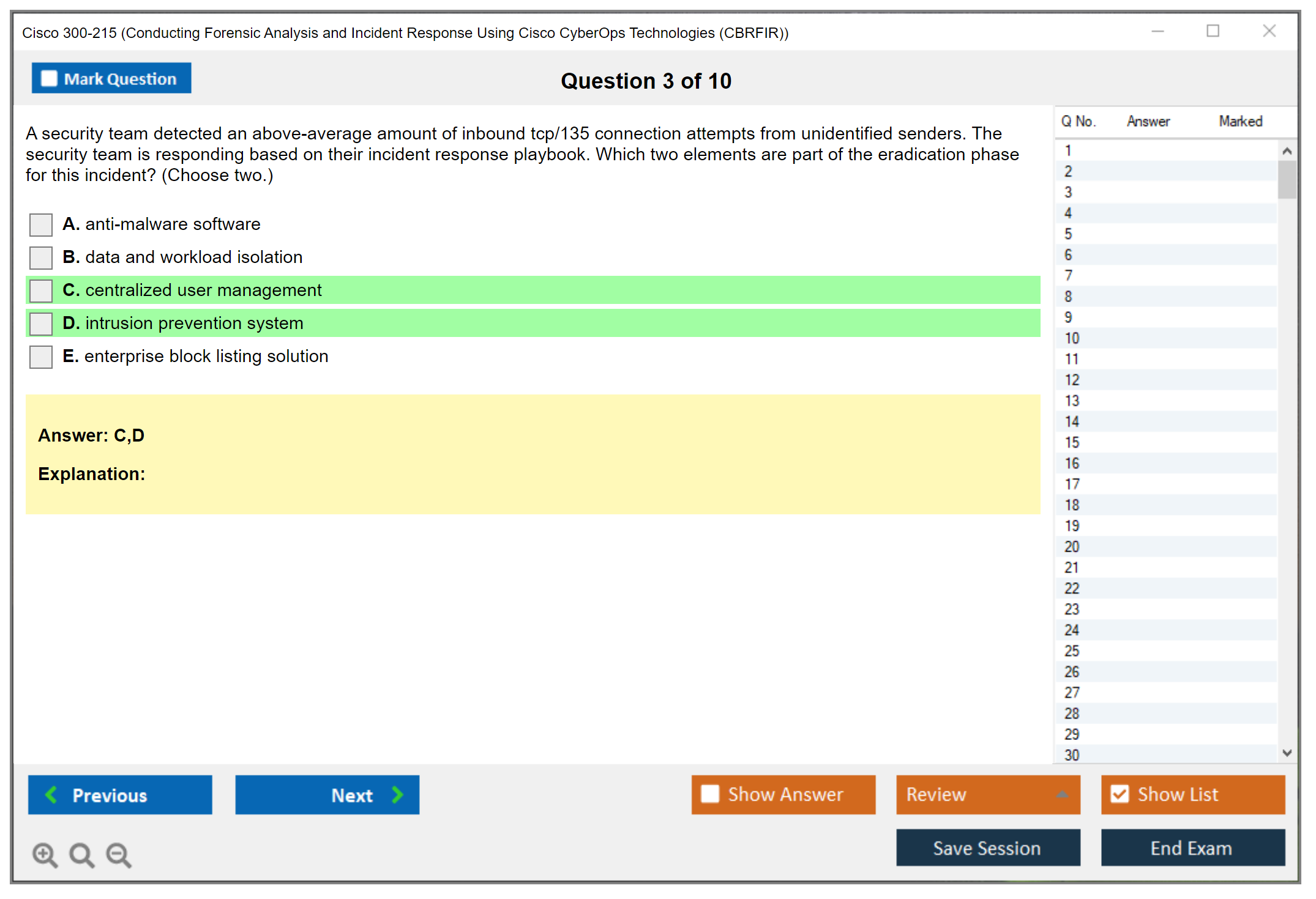 The number of questions in the Cisco 300-215 exam can vary, but typically there are around 60-70 questions.