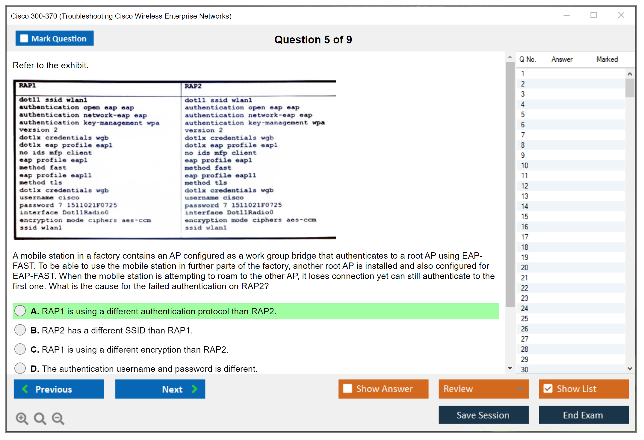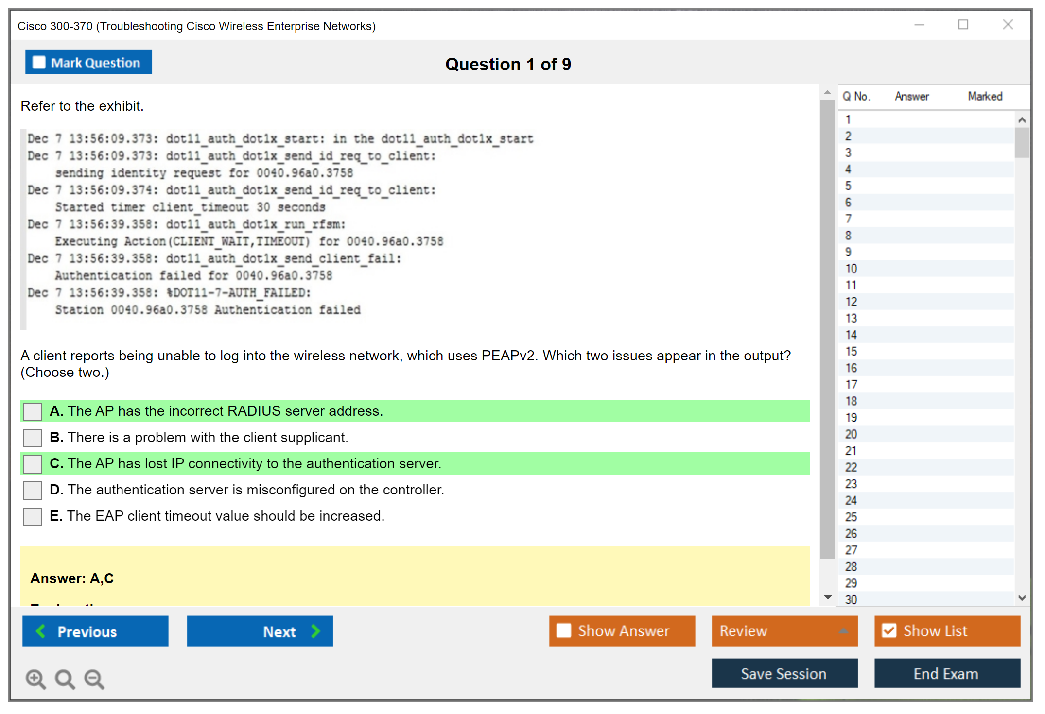 The Cisco 300-370 (Troubleshooting Cisco Wireless Enterprise Networks) exam is designed to test a candidate's knowledge and skills required to troubleshoot enterprise wireless network issues. It is part of the CCNP Wireless certification.