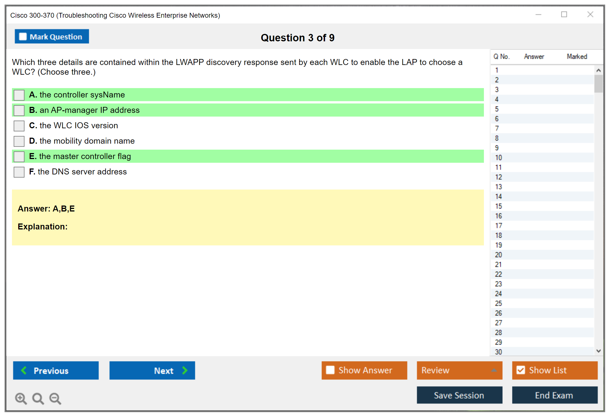 Note: Cisco 300-370 (Troubleshooting Cisco Wireless Enterprise Networks) will not receive any new updates.