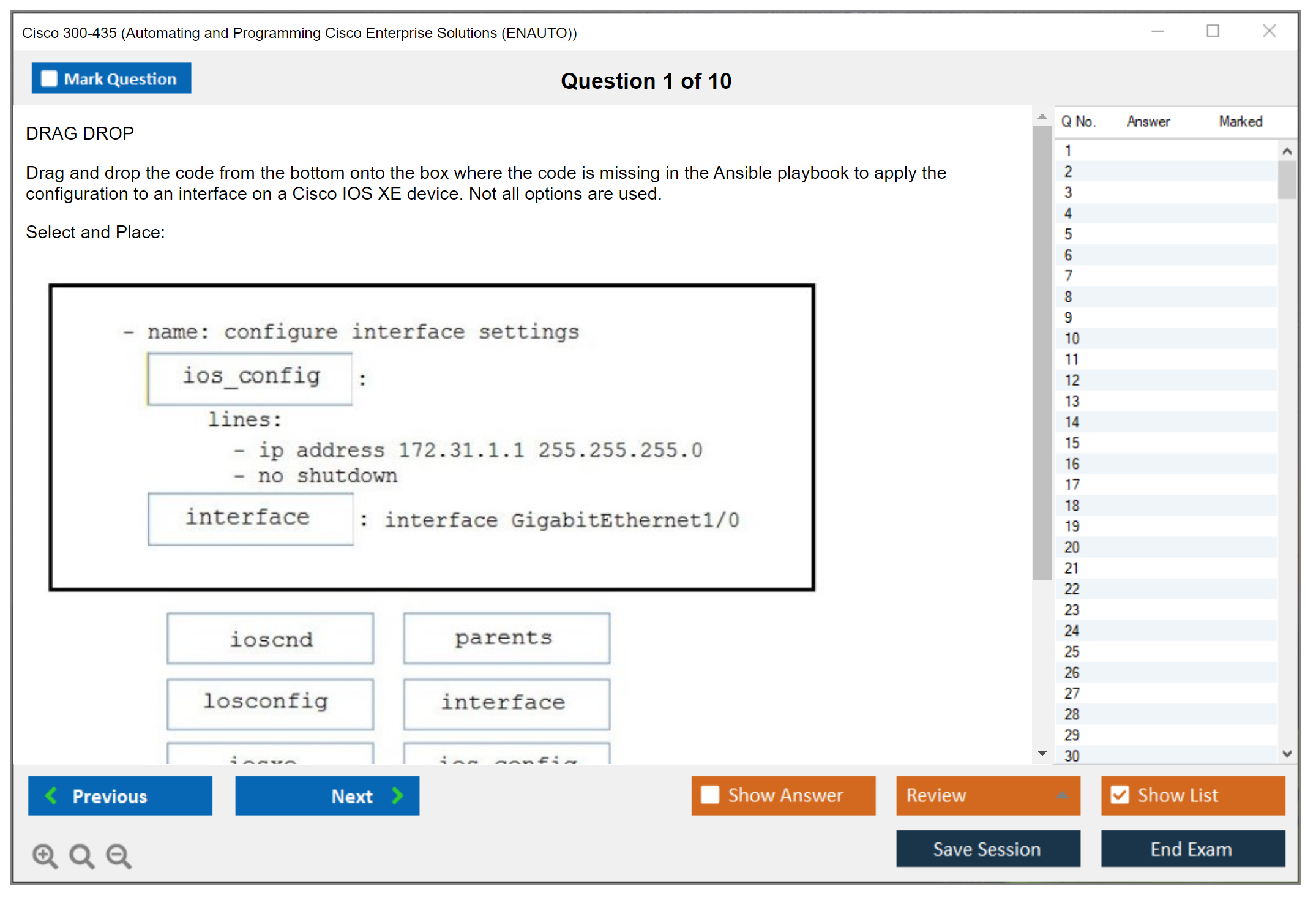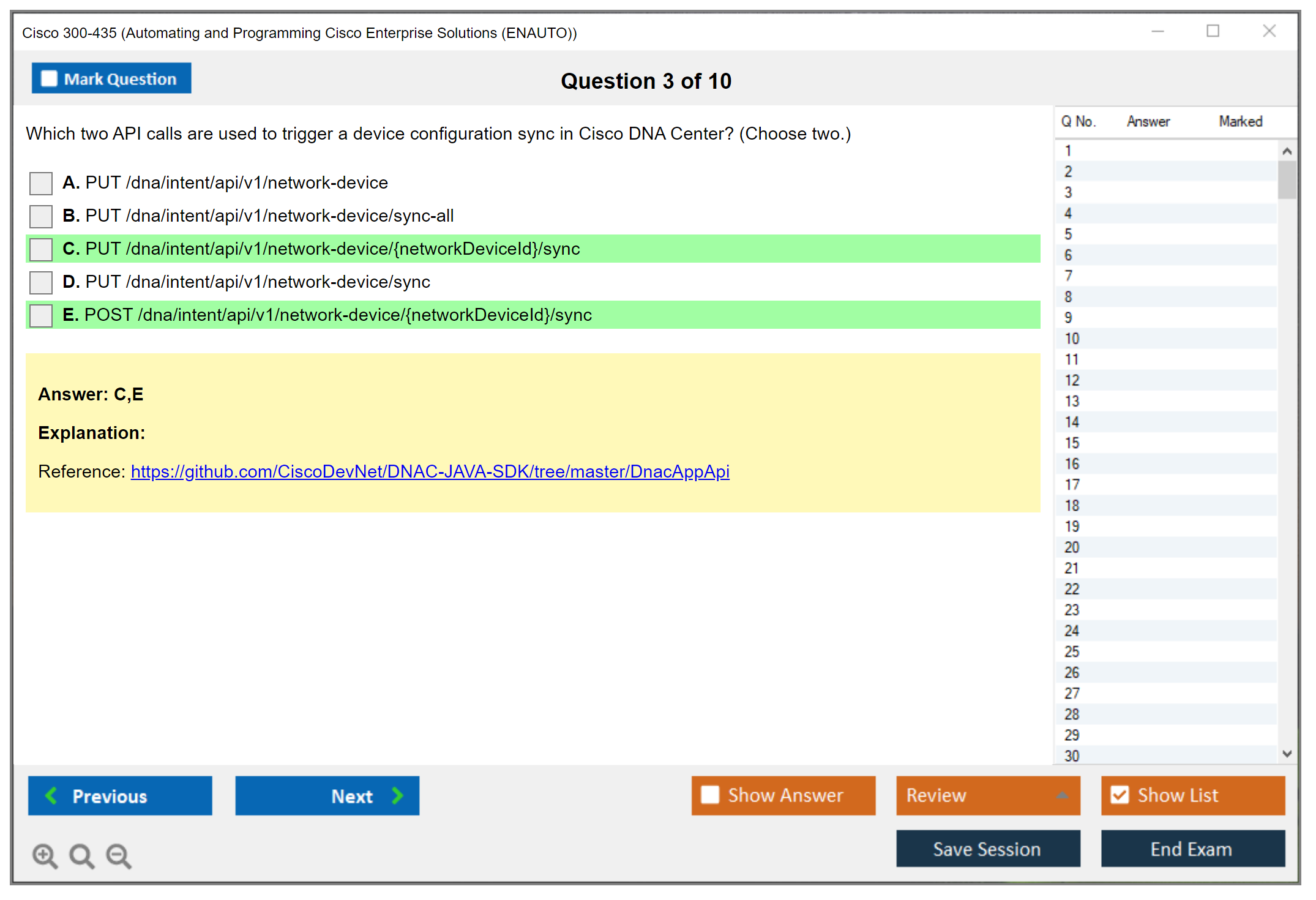 Get Cisco 300-435 Exam Dumps and practice test software. Create your own practice tests with our study guides and flashcards, or use our practice tests in exams mode. Improve your skill today!