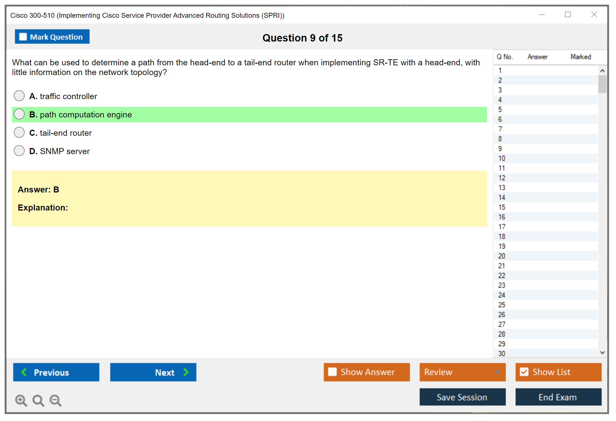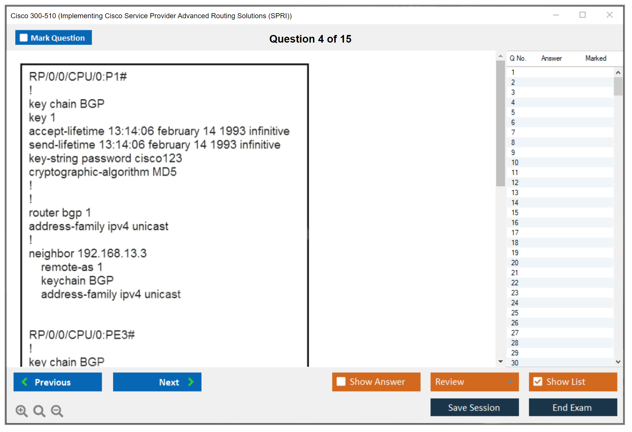 The Cisco 300-510 (Implementing Cisco Service Provider Advanced Routing Solutions (SPRI)) exam is a certification exam that tests a candidate's knowledge and skills related to implementing and troubleshooting advanced routing technologies and services in a service provider network.