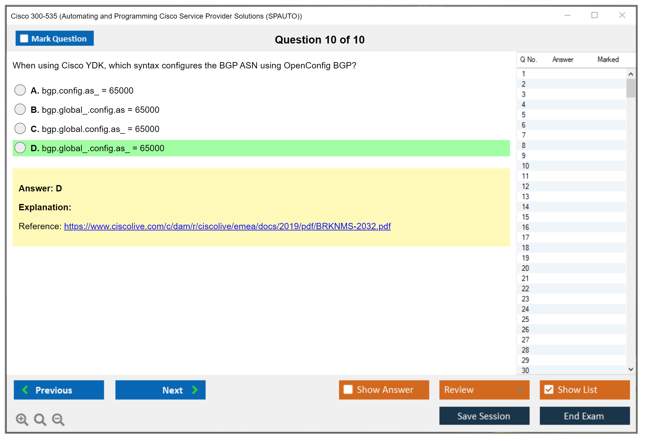 The Cisco 300-535 study guide from DumpsBoss is outstanding! The detailed explanations and comprehensive coverage made complex topics easy to understand, helping me ace the exam. A must-have resource!