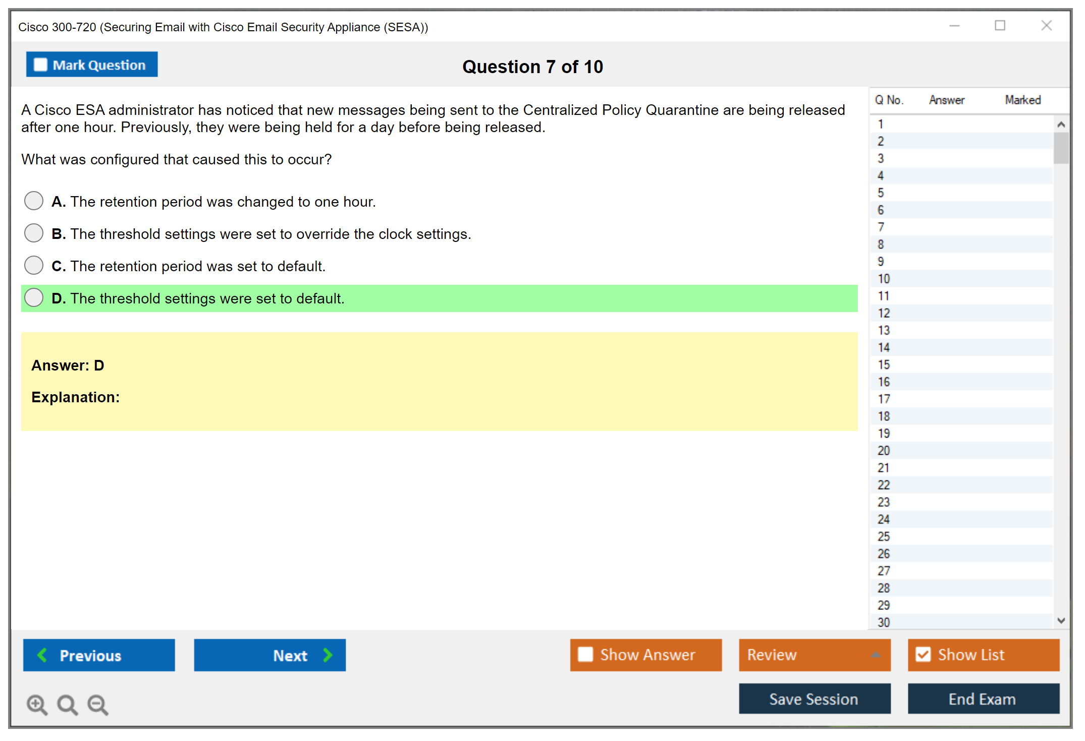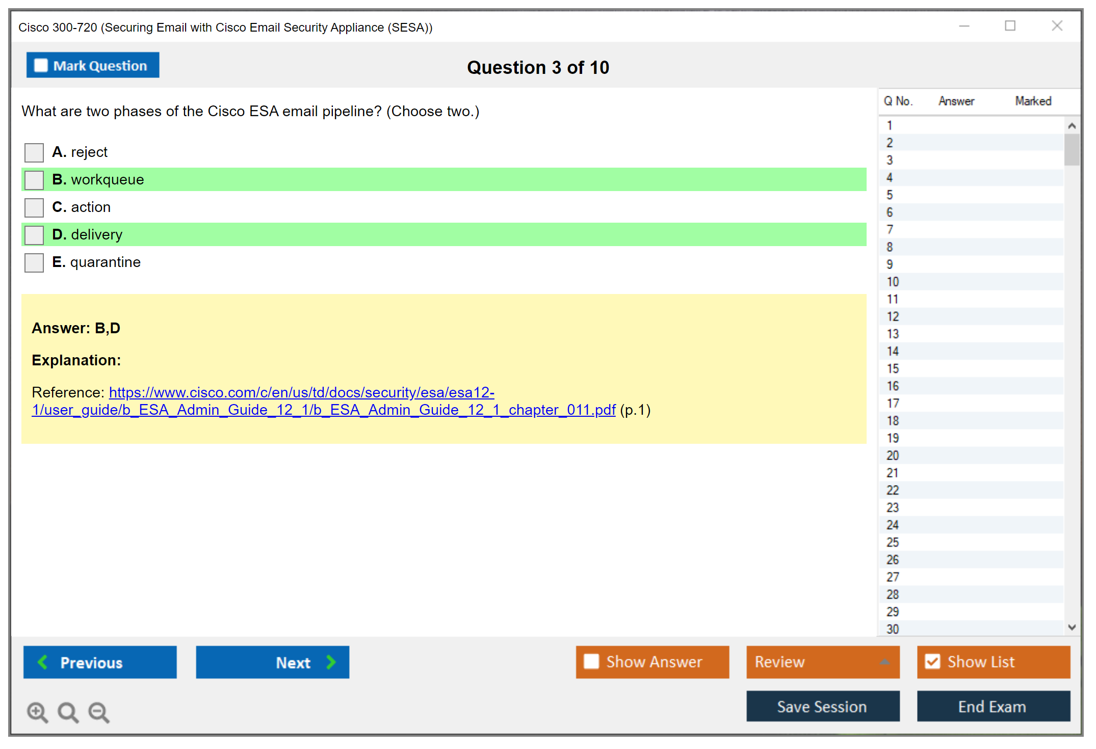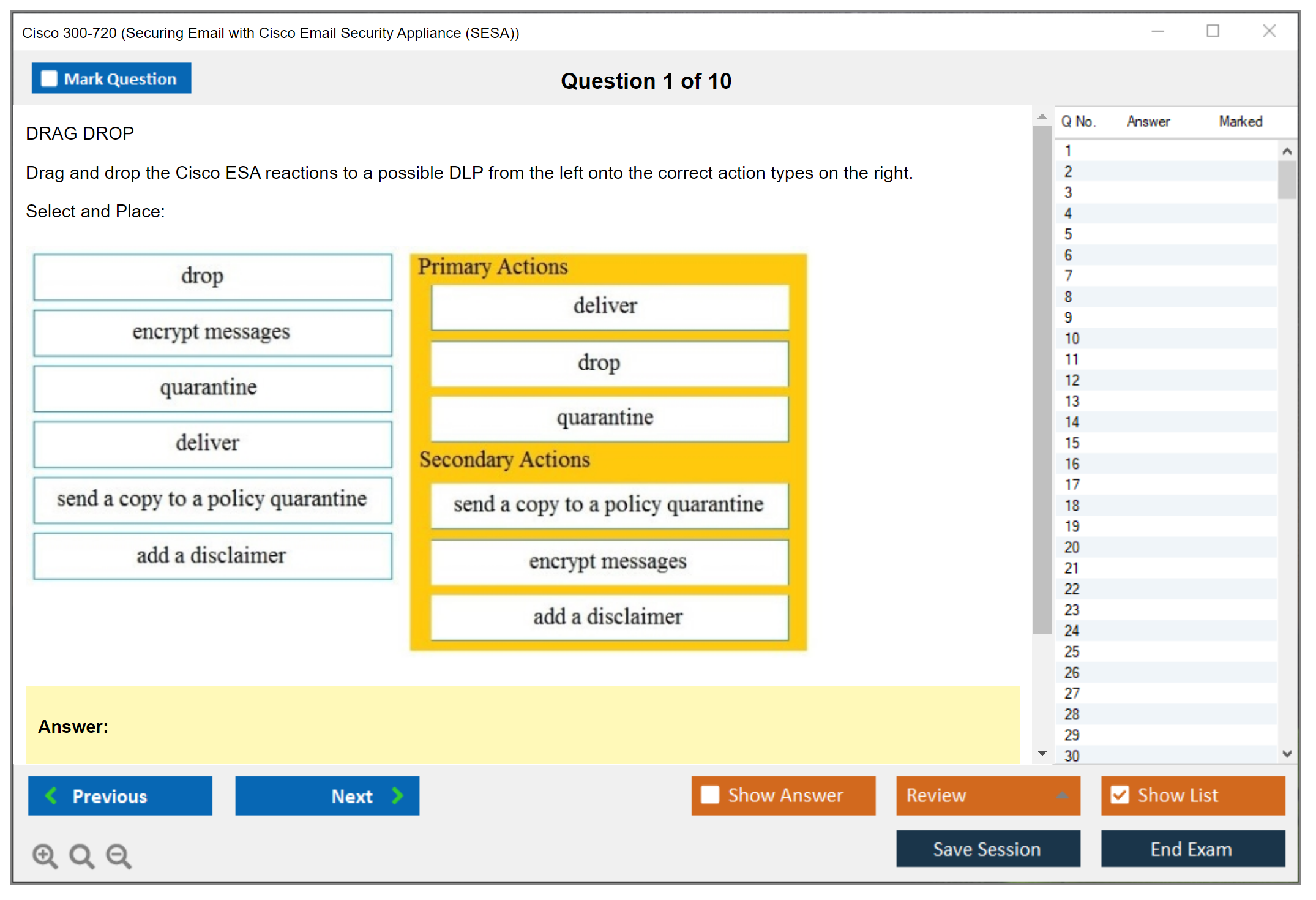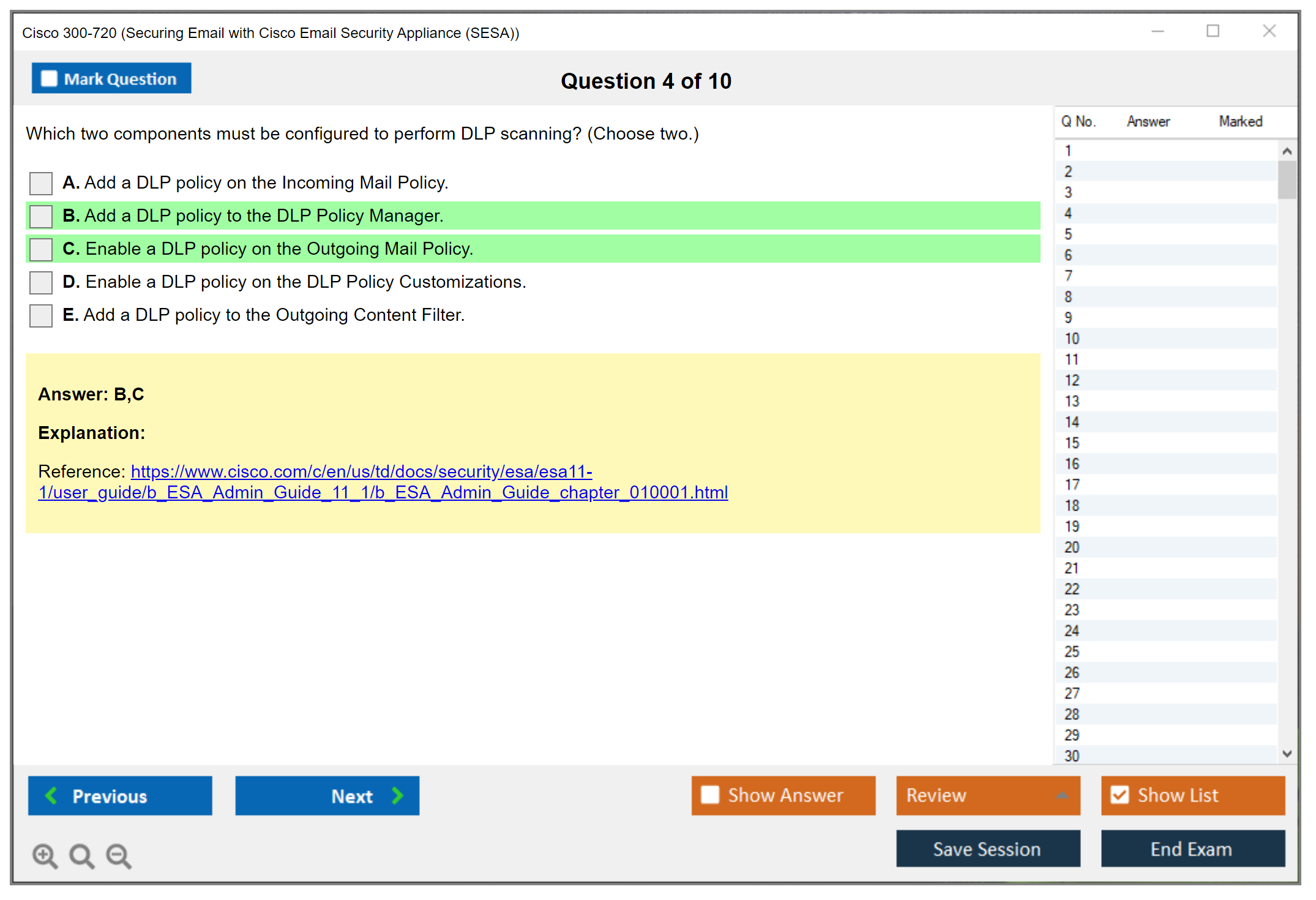 The Cisco 300-720 (Securing Email with Cisco Email Security Appliance (300-720 SESA)) exam is designed to validate the knowledge and skills required to secure email communication using Cisco Email Security Appliance. This exam is part of the Cisco Certified Specialist - Email Content Security certification and is also a concentration exam for the CCNP Security certification.