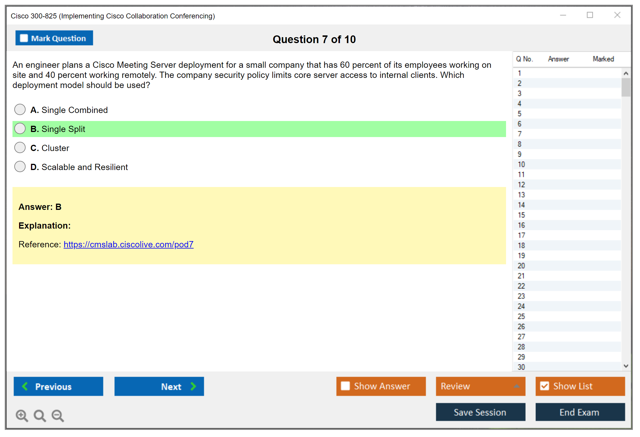 The Cisco 300-825 (Implementing Cisco Collaboration Conferencing (CLCNF)) exam is a certification exam that tests a candidate's knowledge and skills in implementing and supporting Cisco Collaboration Conferencing solutions, including on-premises conferencing, cloud-based conferencing, and hybrid conferencing deployments.