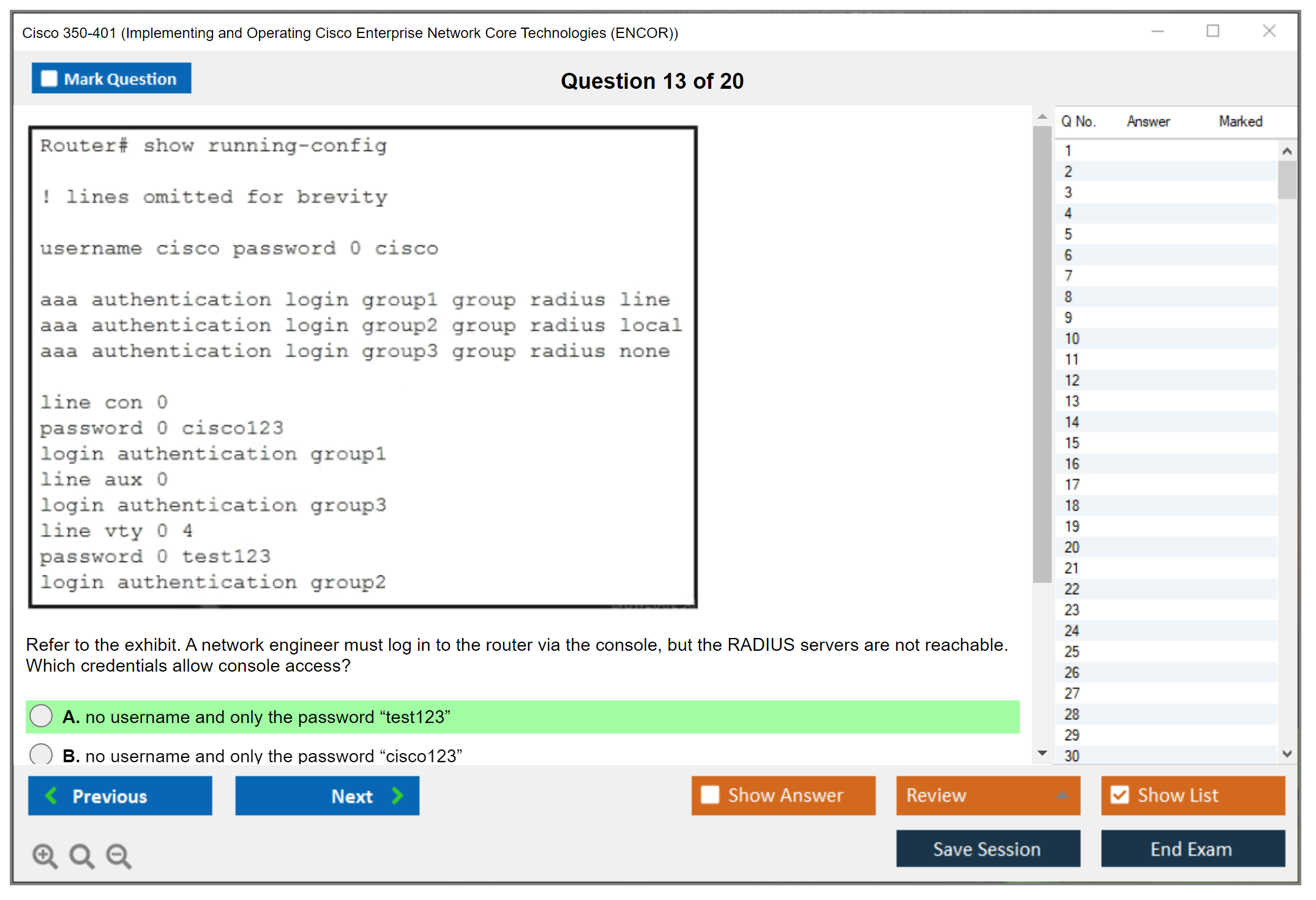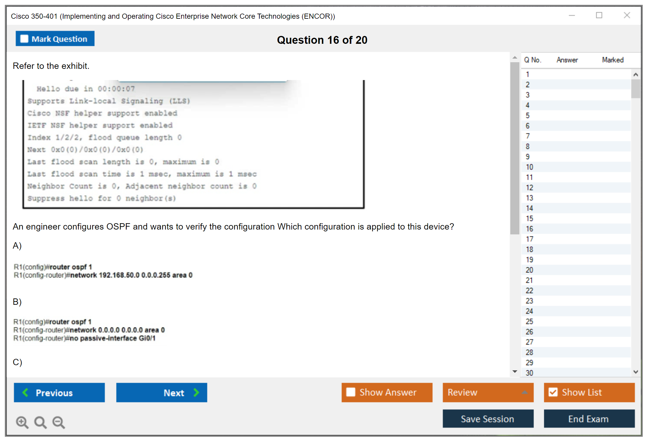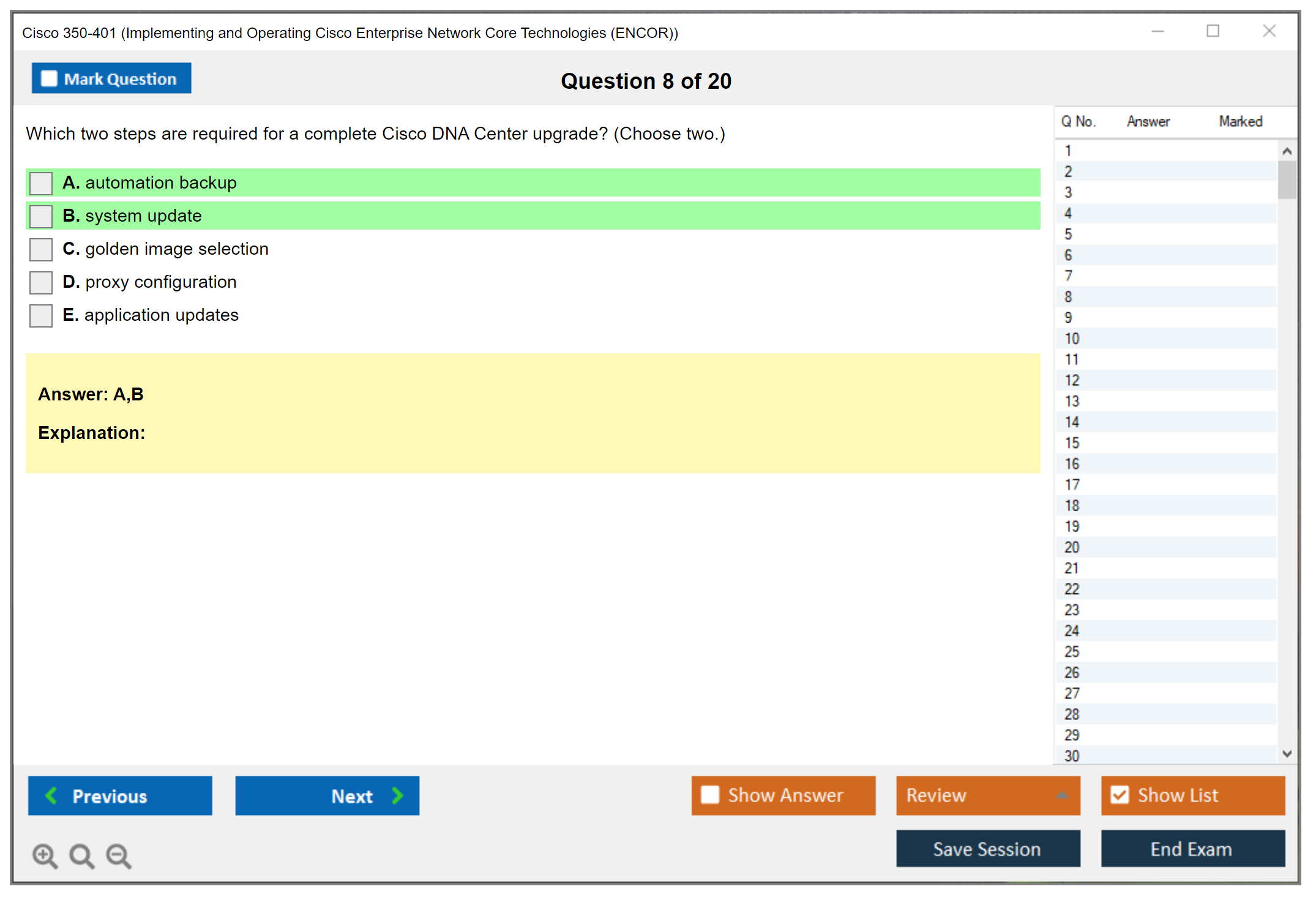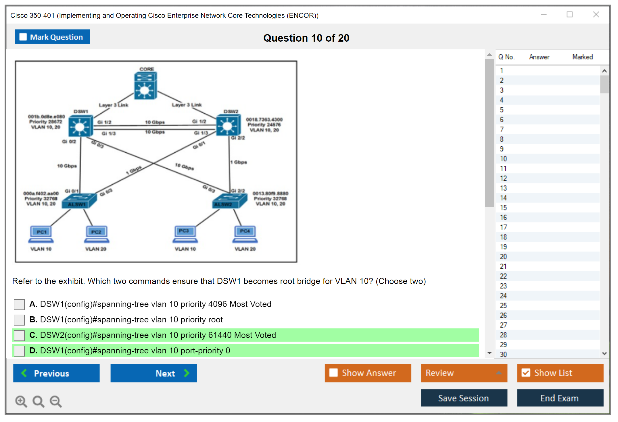 DumpsBoss provided a fantastic platform to test my knowledge for the Cisco 350-401 ENCOR exam. Their practice tests were challenging yet approachable, mimicking the real exam format perfectly. The explanations for each answer were clear and concise, helping me identify areas needing further study. I highly recommend DumpsBoss to anyone preparing for their Cisco certification.