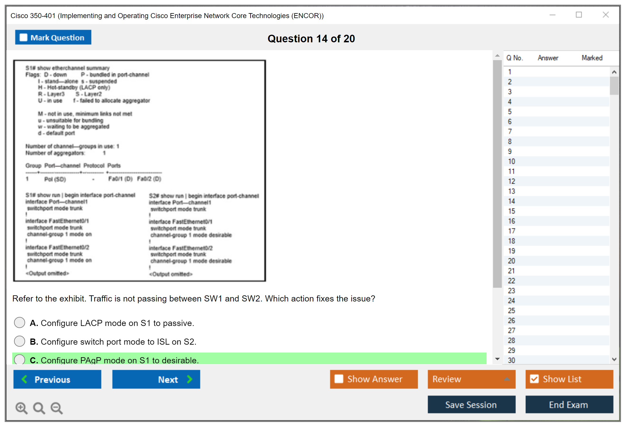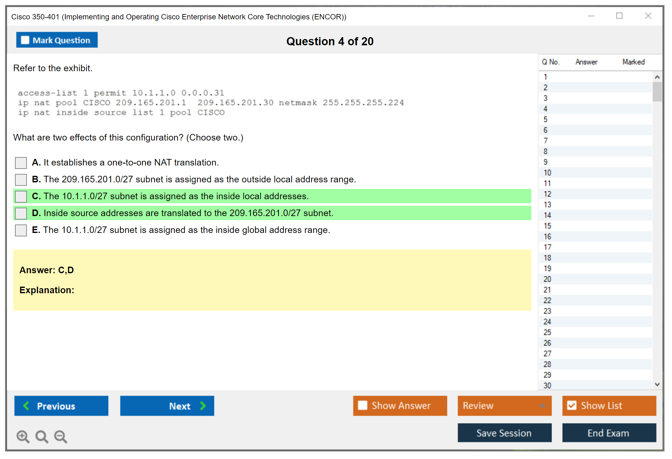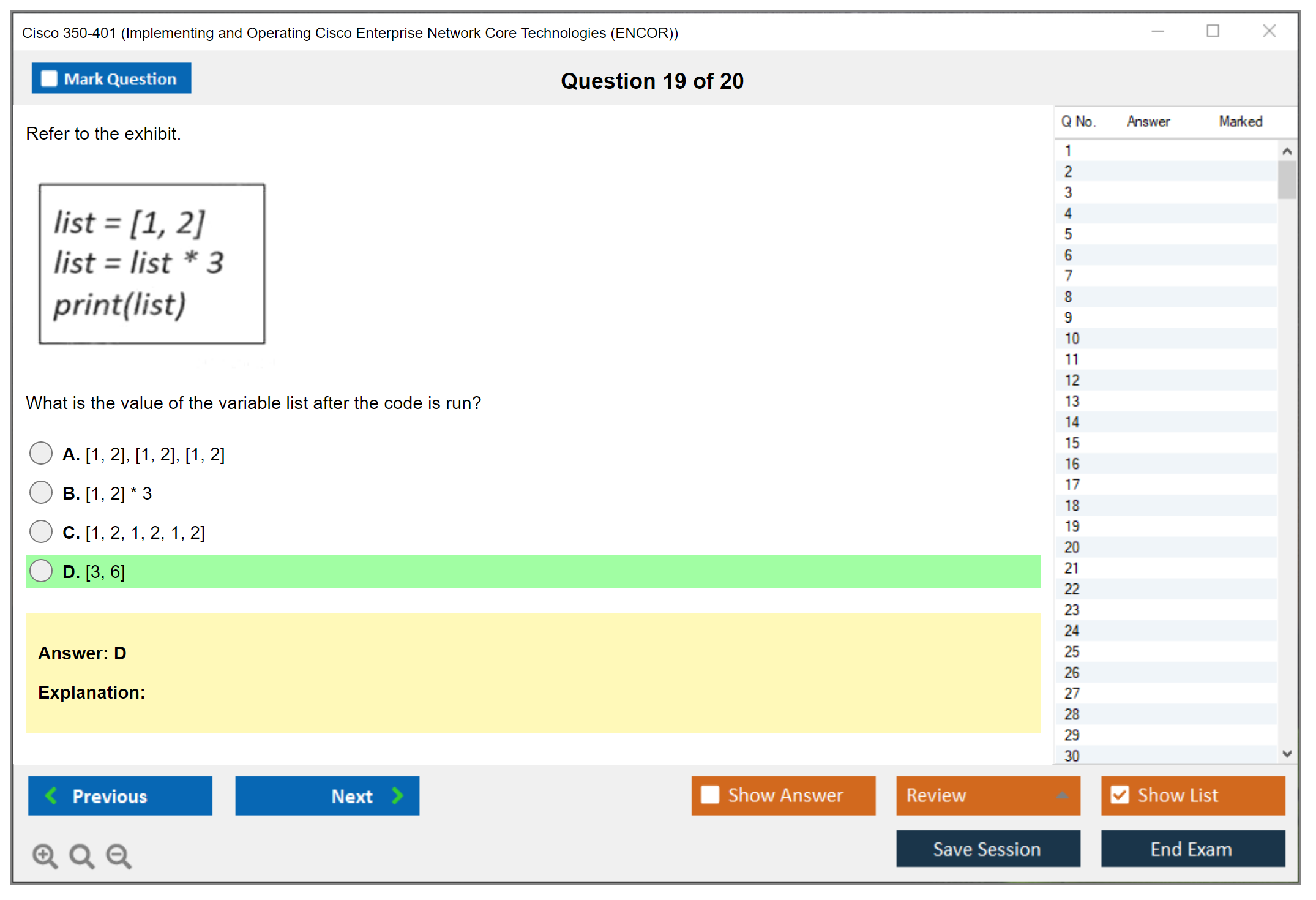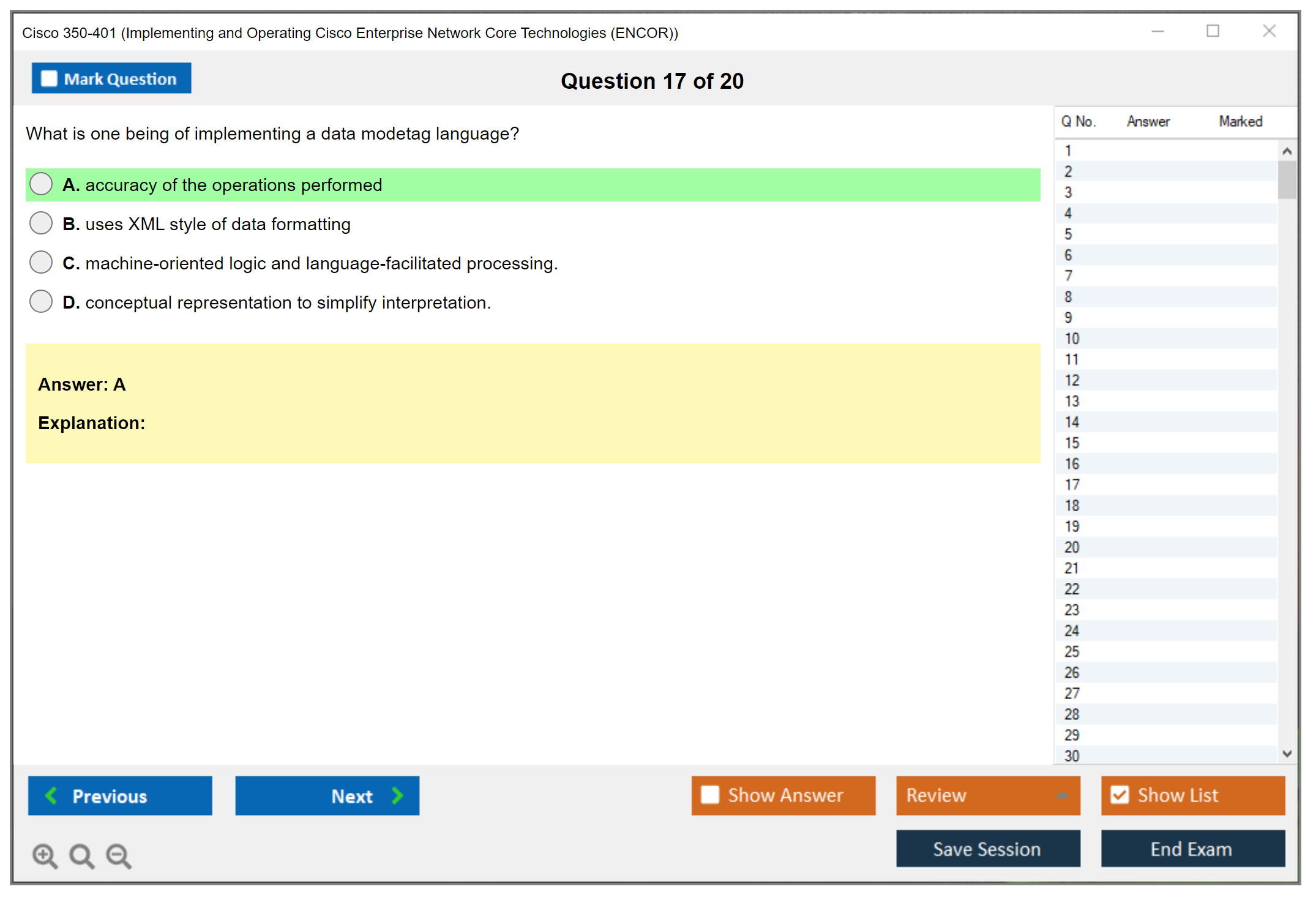 Struggling to find quality practice exams for the 350-401 Encor? Look no further than DumpsBoss! Their comprehensive question bank covered all the essential topics and identified my knowledge gaps. The explanations were clear and concise, helping me solidify my understanding. DumpsBoss definitely gave me the edge I needed to pass the exam.