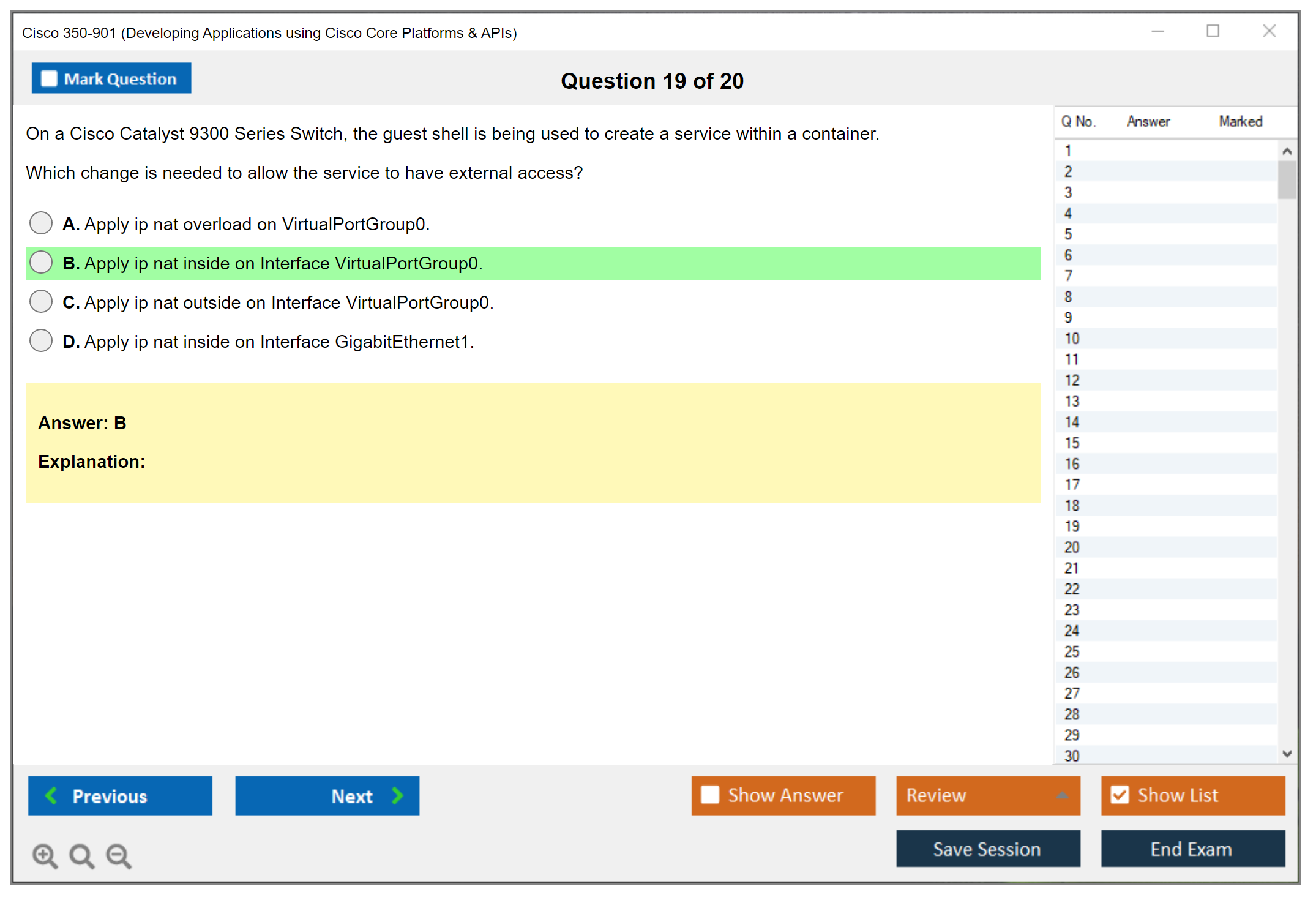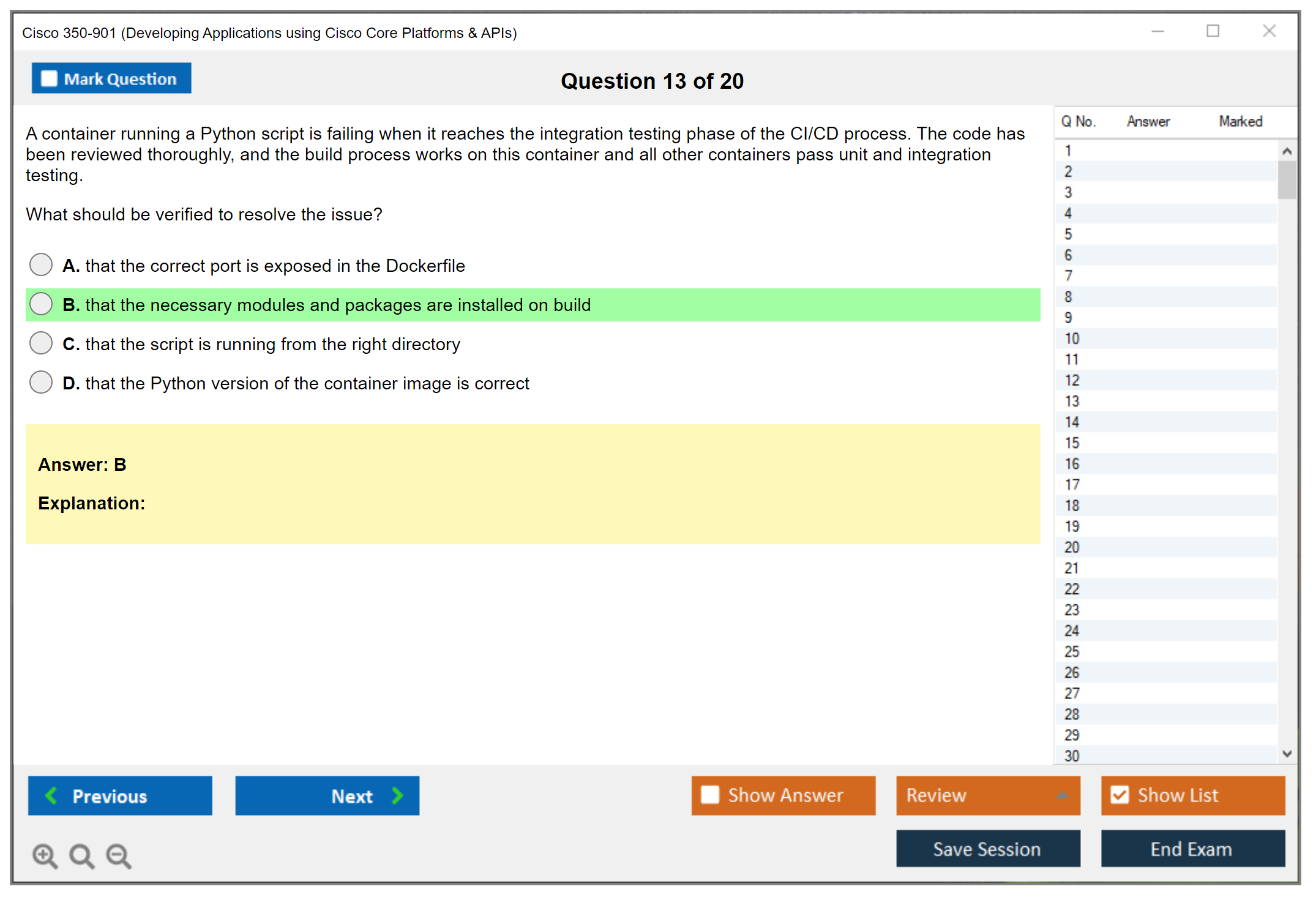 I can't recommend DumpsBoss enough for their 350-901 practice test! The questions were spot-on, reflecting the exam's difficulty level accurately. Coupled with insightful explanations, it's a surefire way to ace the test. Kudos to DumpsBoss for their top-notch resources!
