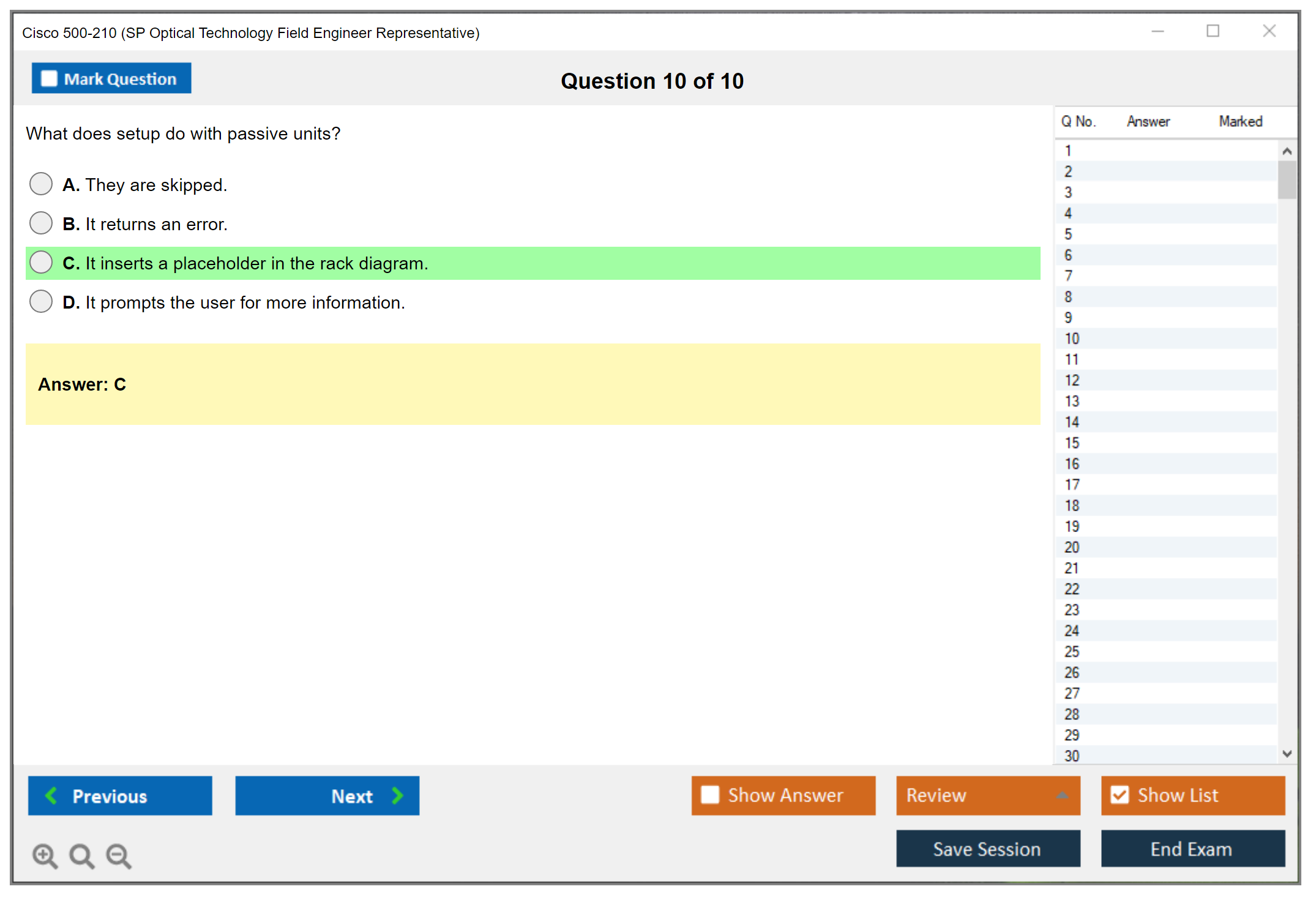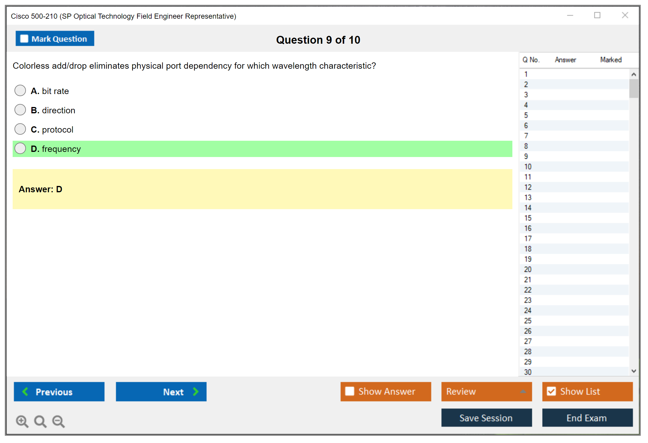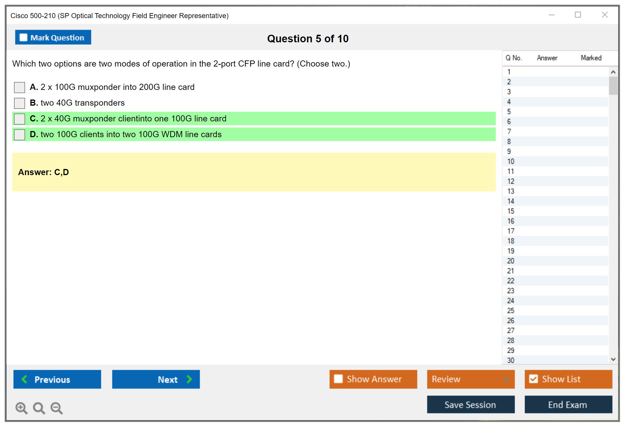 The Cisco 500-210 (SP Optical Technology Field Engineer Representative) Exam is designed to validate the skills and knowledge of field engineers working with service provider optical technologies. The exam covers various aspects of optical networks, including installation, configuration, and troubleshooting.