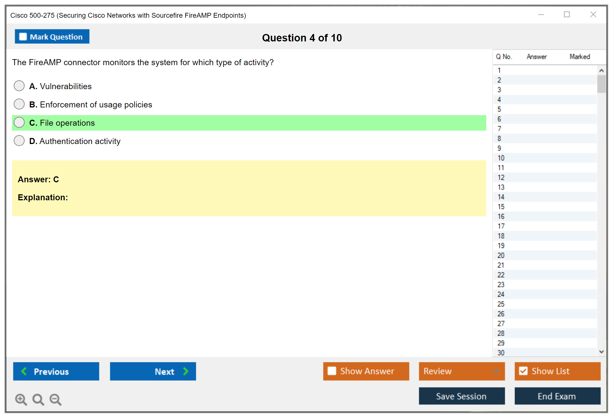 500-275 (Securing Cisco Networks with Sourcefire FireAMP Endpoints) PDF + Test Engine
