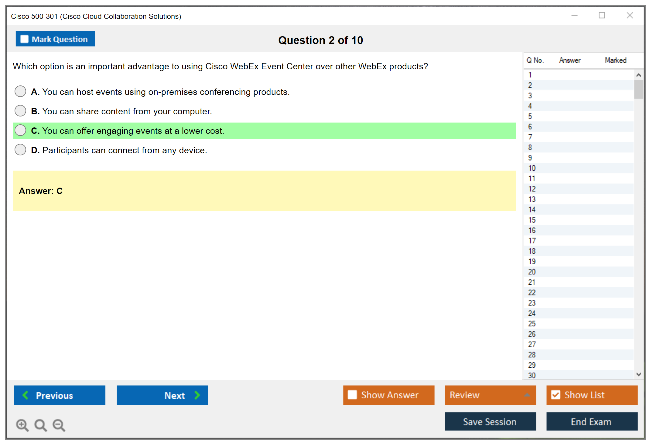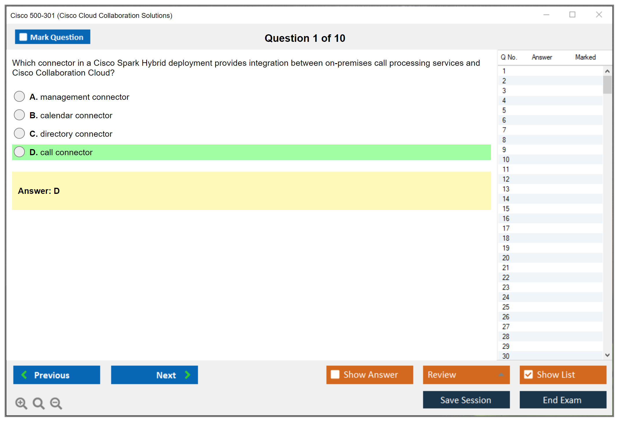 The Cisco 500-301 (Cisco Cloud Collaboration Solutions) exam is designed to validate the knowledge and skills of professionals in implementing, configuring, and troubleshooting Cisco cloud collaboration solutions.