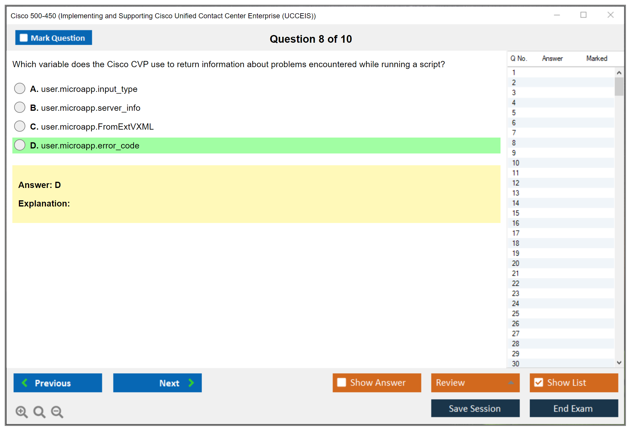 The Cisco 500-450 (Implementing and Supporting Cisco Unified Contact Center Enterprise (UCCEIS)) exam is designed to test a candidate's knowledge and skills required to implement and support Cisco Unified Contact Center Enterprise solutions.
