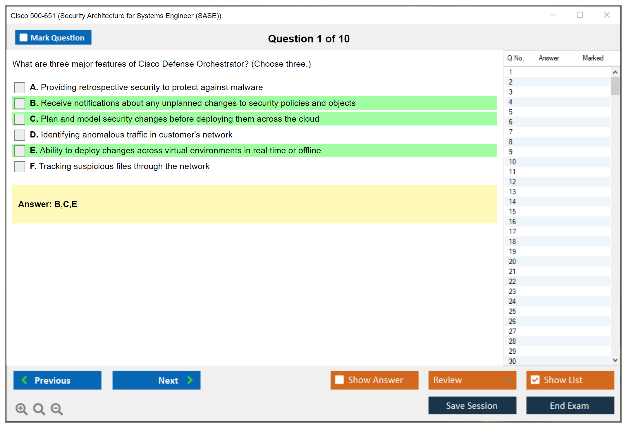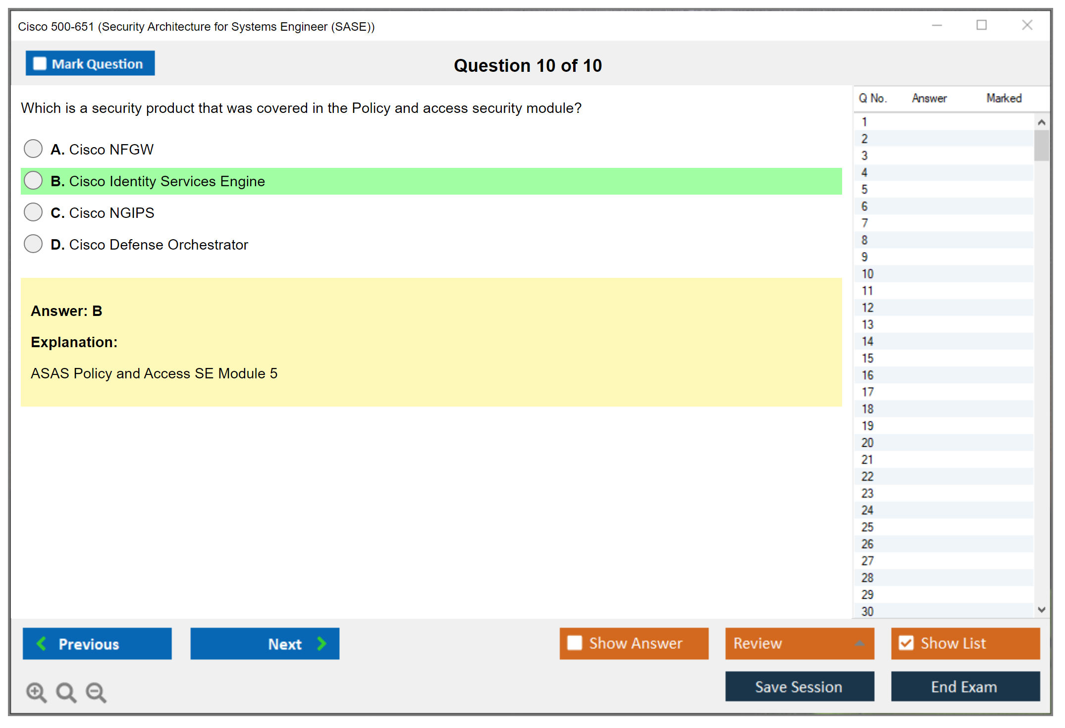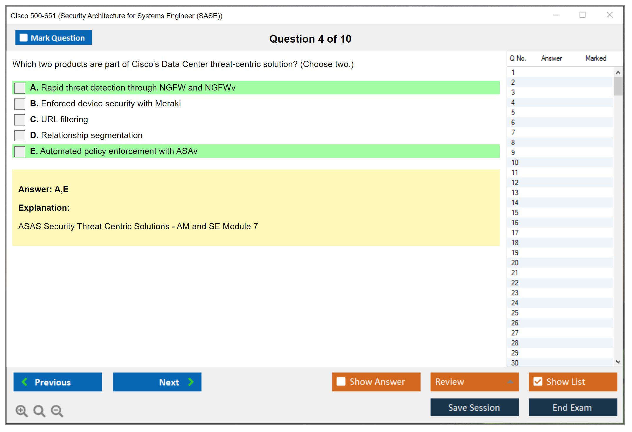 The Cisco 500-651 (Security Architecture for Systems Engineer (SASE)) exam is designed to validate the knowledge and skills of systems engineers in the field of security architecture. It covers various aspects of designing and implementing secure network solutions.
