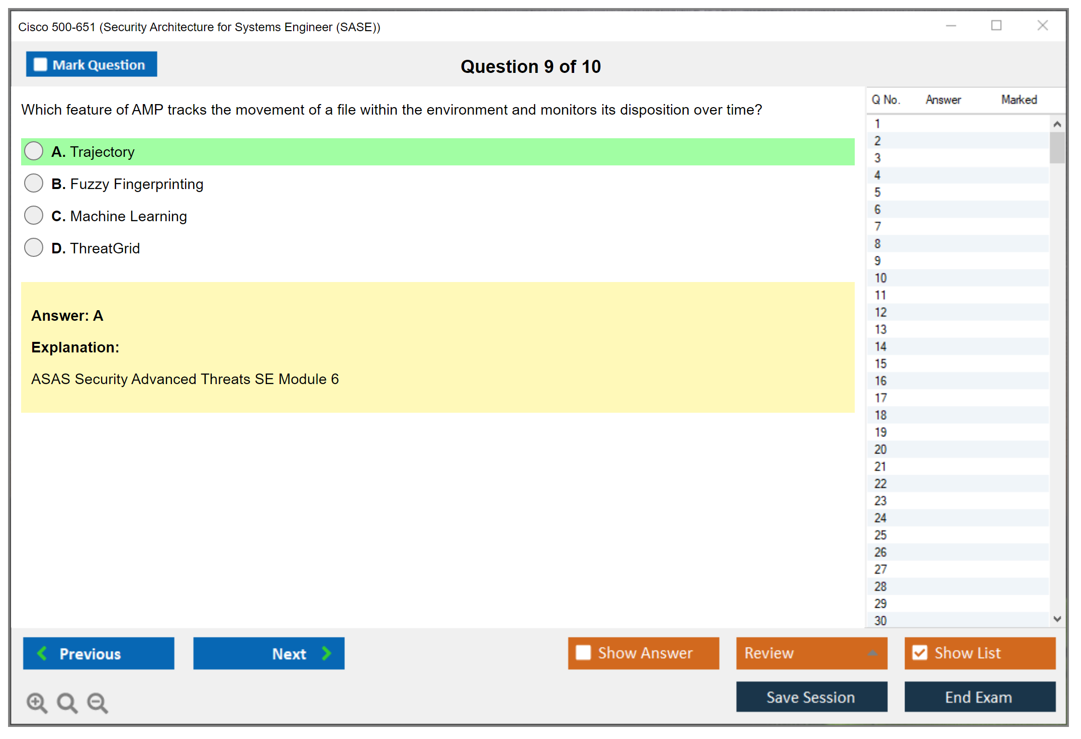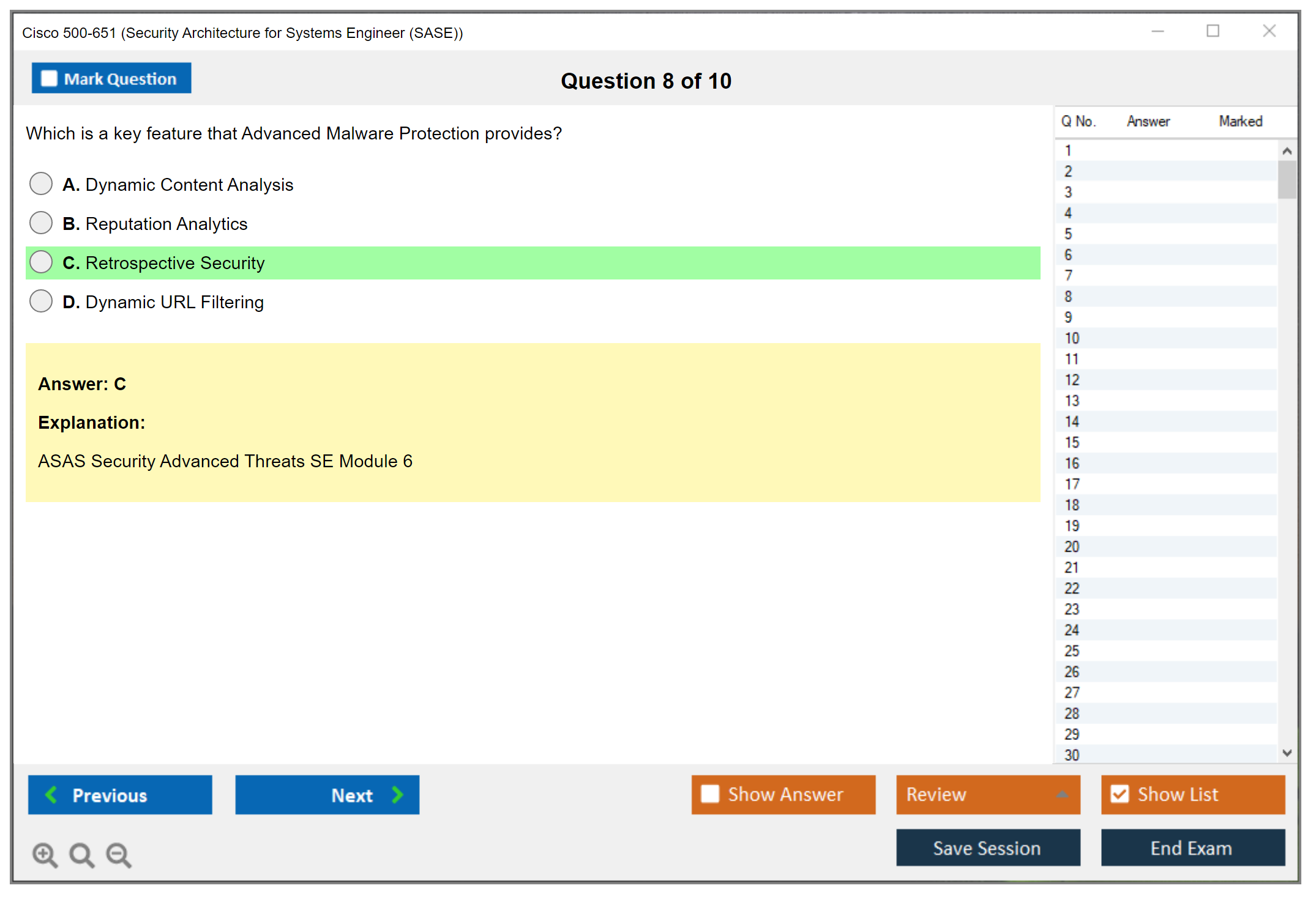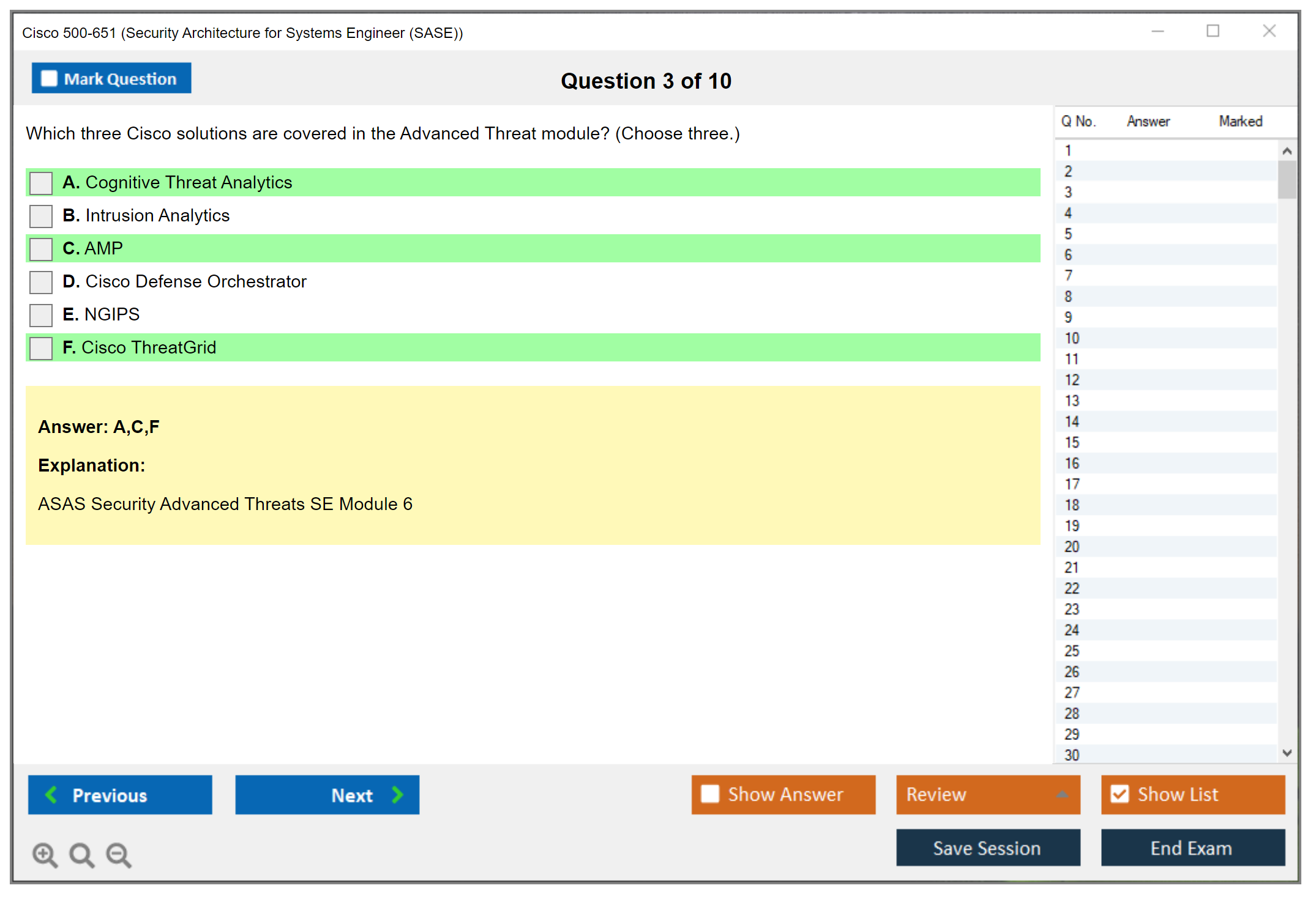 The Cisco 500-651 (Security Architecture for Systems Engineer (SASE)) exam is designed to validate the knowledge and skills of systems engineers in the field of security architecture. It covers various aspects of designing and implementing secure network solutions.