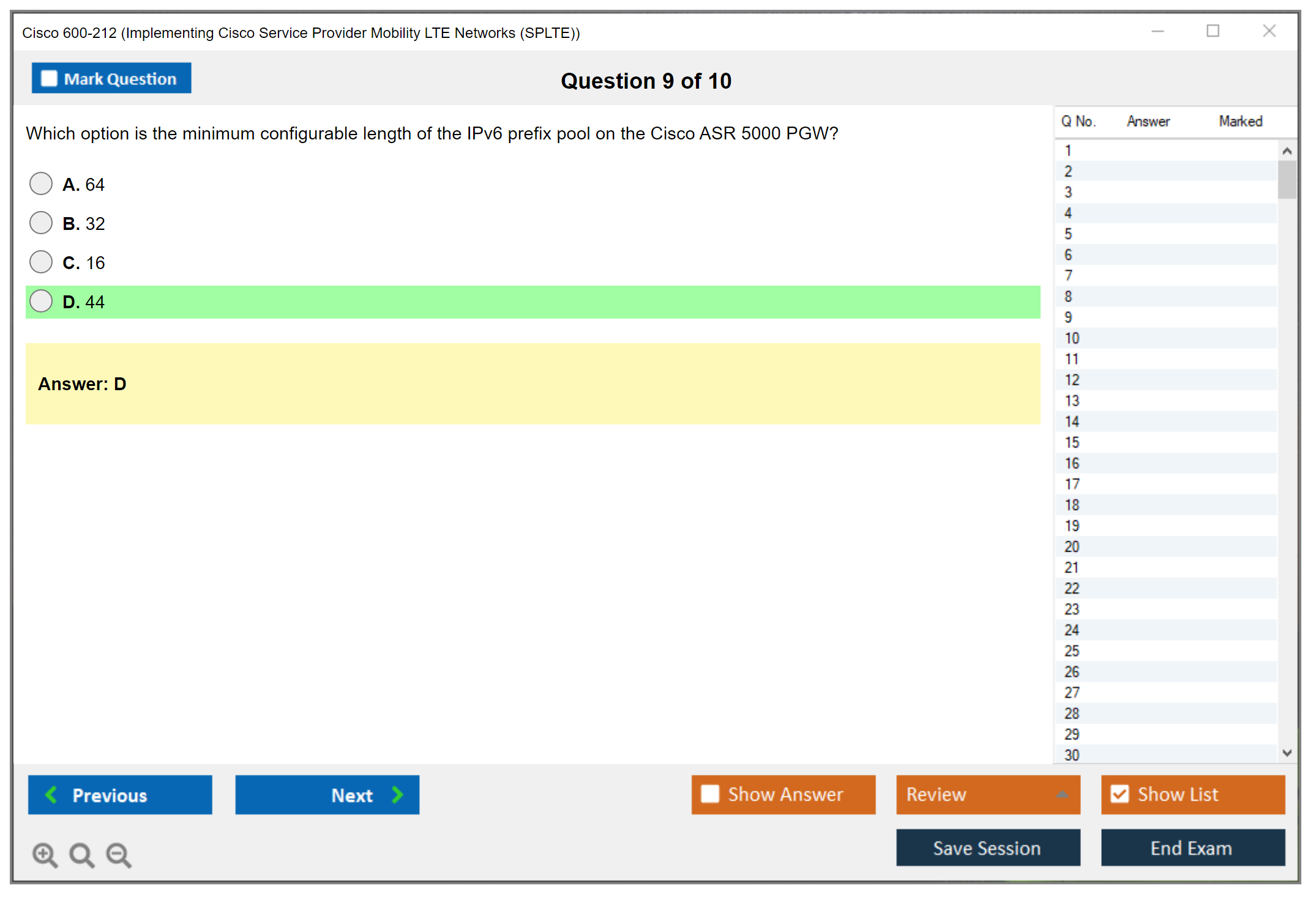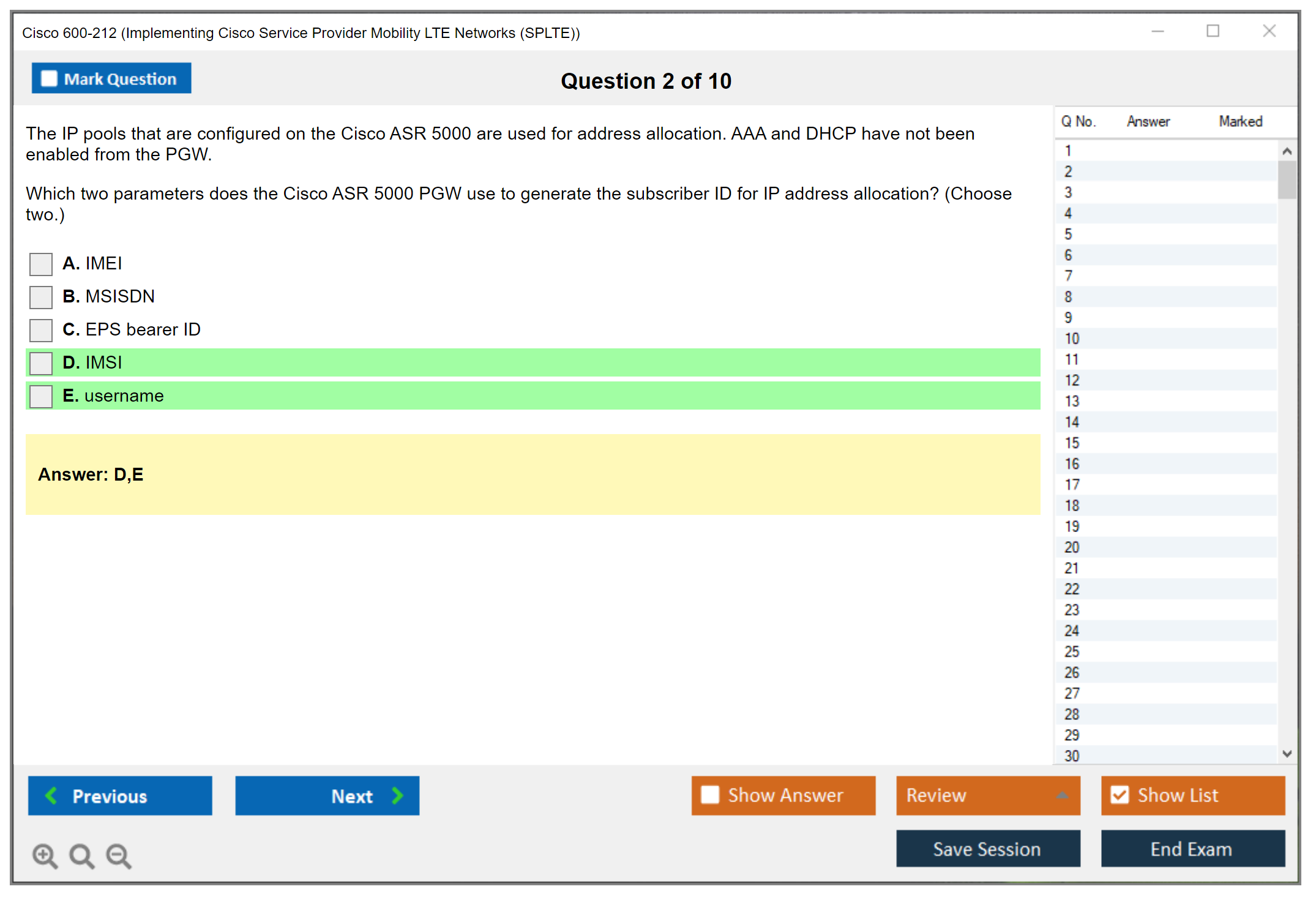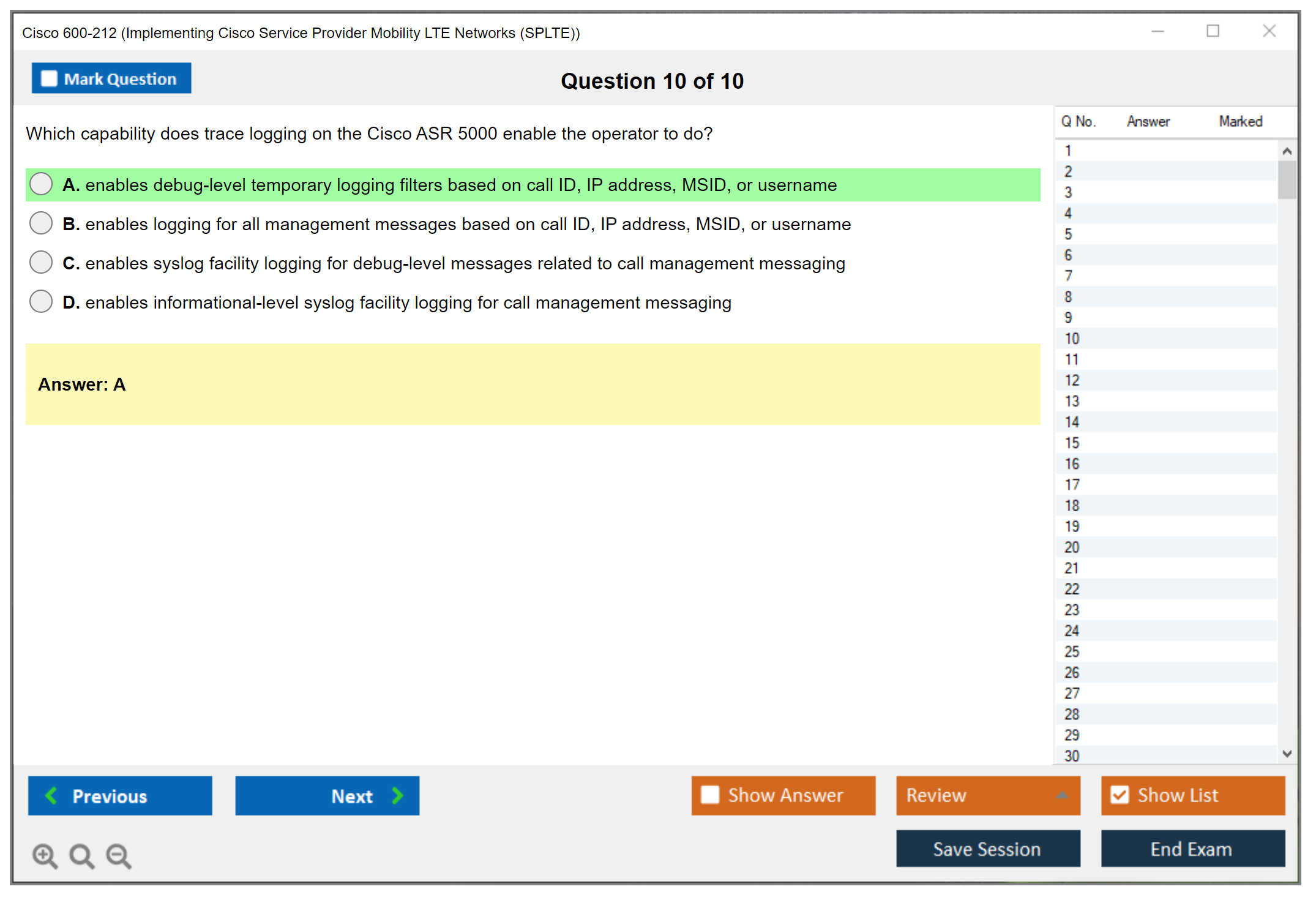 The Cisco 600-212 exam, also known as Implementing Cisco Service Provider Mobility LTE Networks (SPLTE), is designed to test the knowledge and skills of candidates in implementing and managing LTE networks in a service provider environment.
