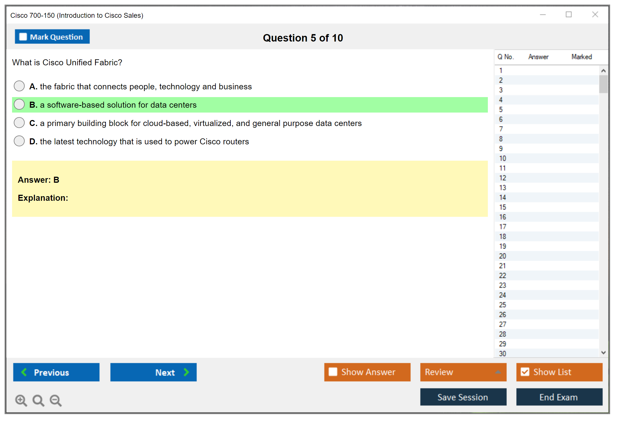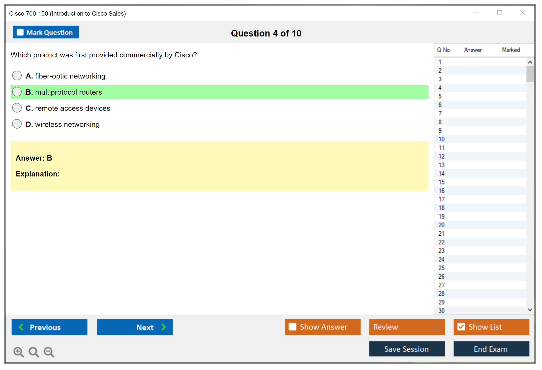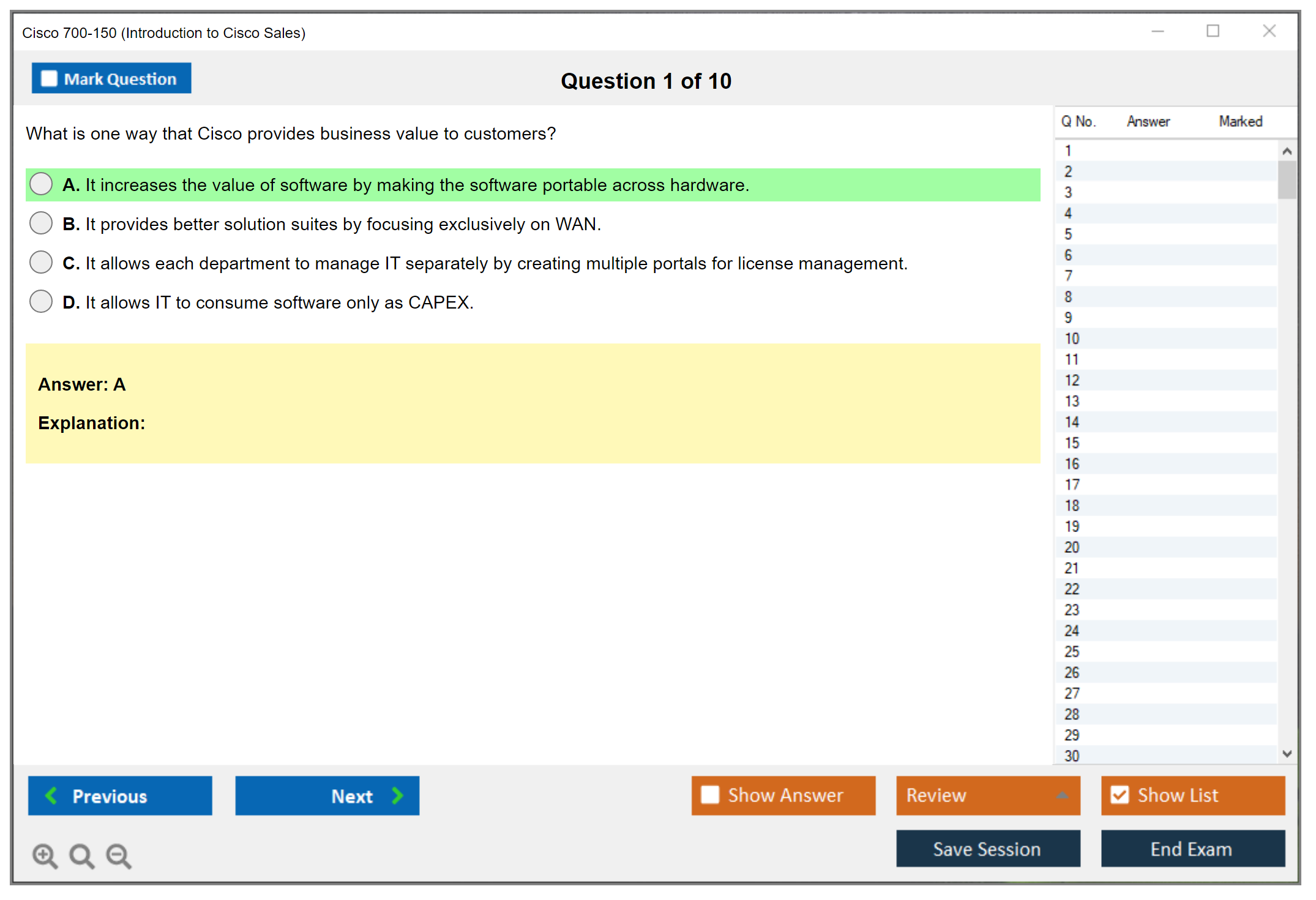 Impressed by the quality and accuracy of DumpsBoss's 700-150 exam prep! As someone striving for excellence in IT, I needed reliable study materials, and DumpsBoss delivered beyond expectations. The resources provided are spot-on, ensuring I was thoroughly prepared. Thank you, DumpsBoss, for your dedication!