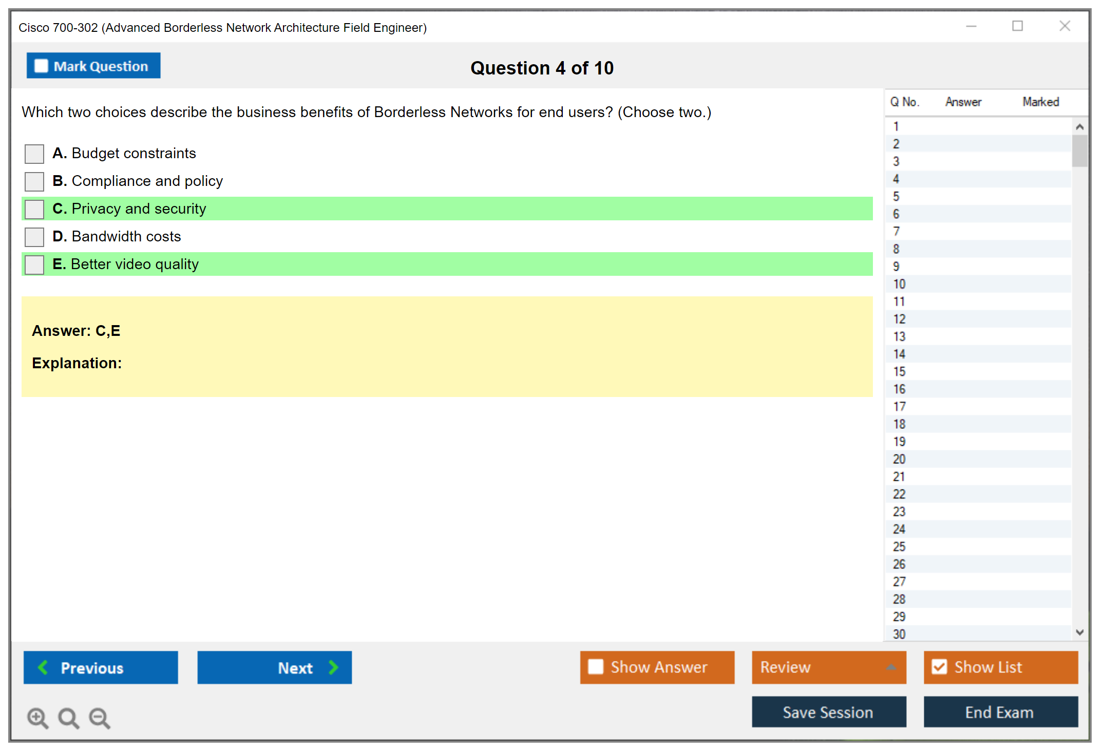 The Cisco 700-302 Exam is part of the Cisco Borderless Network Architecture certification track, which includes other certifications focused on different aspects of Cisco's network solutions.