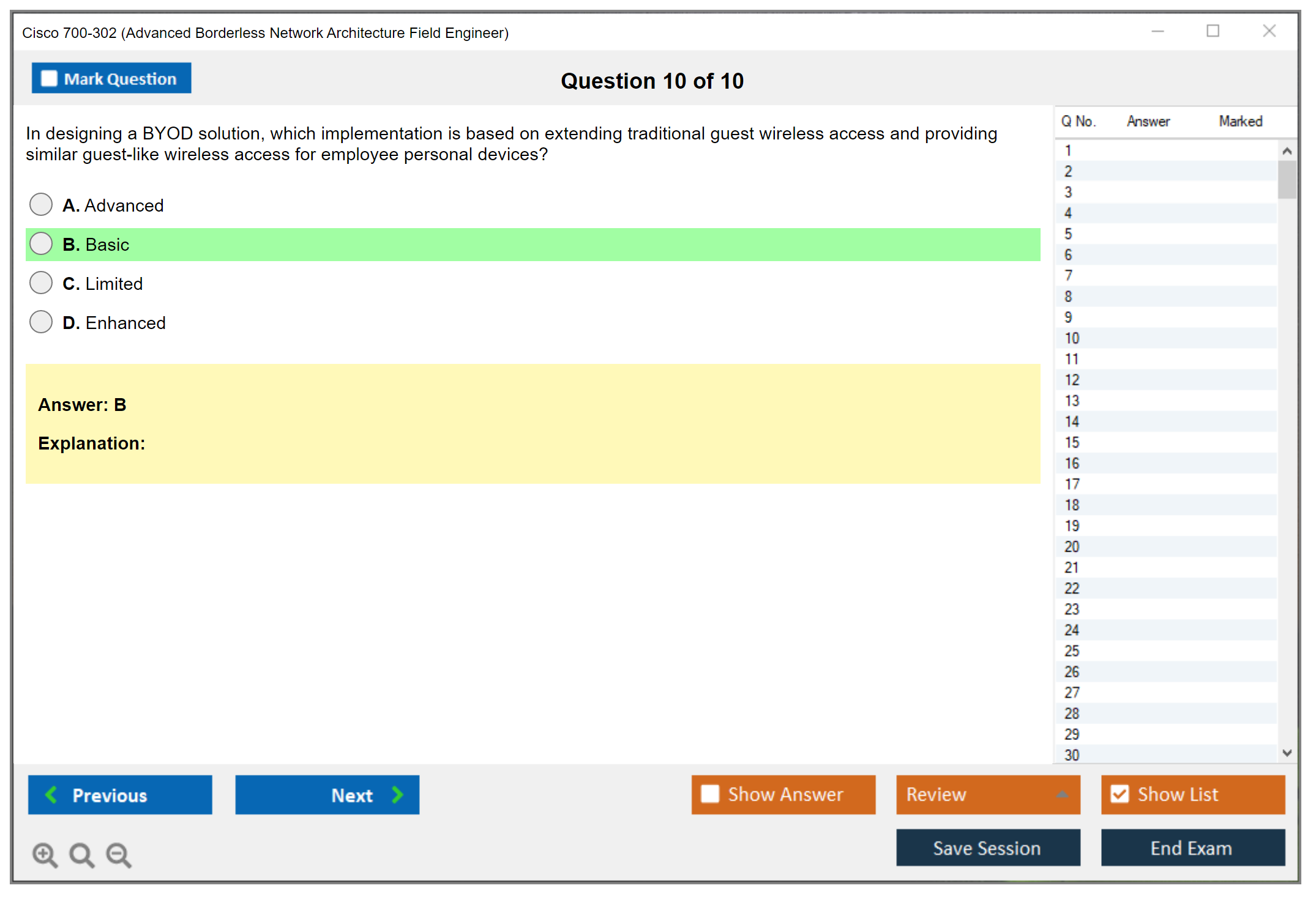 The difficulty level of the Cisco 700-302 Exam is considered to be advanced, requiring a deep understanding of Cisco Borderless Network solutions and practical experience.