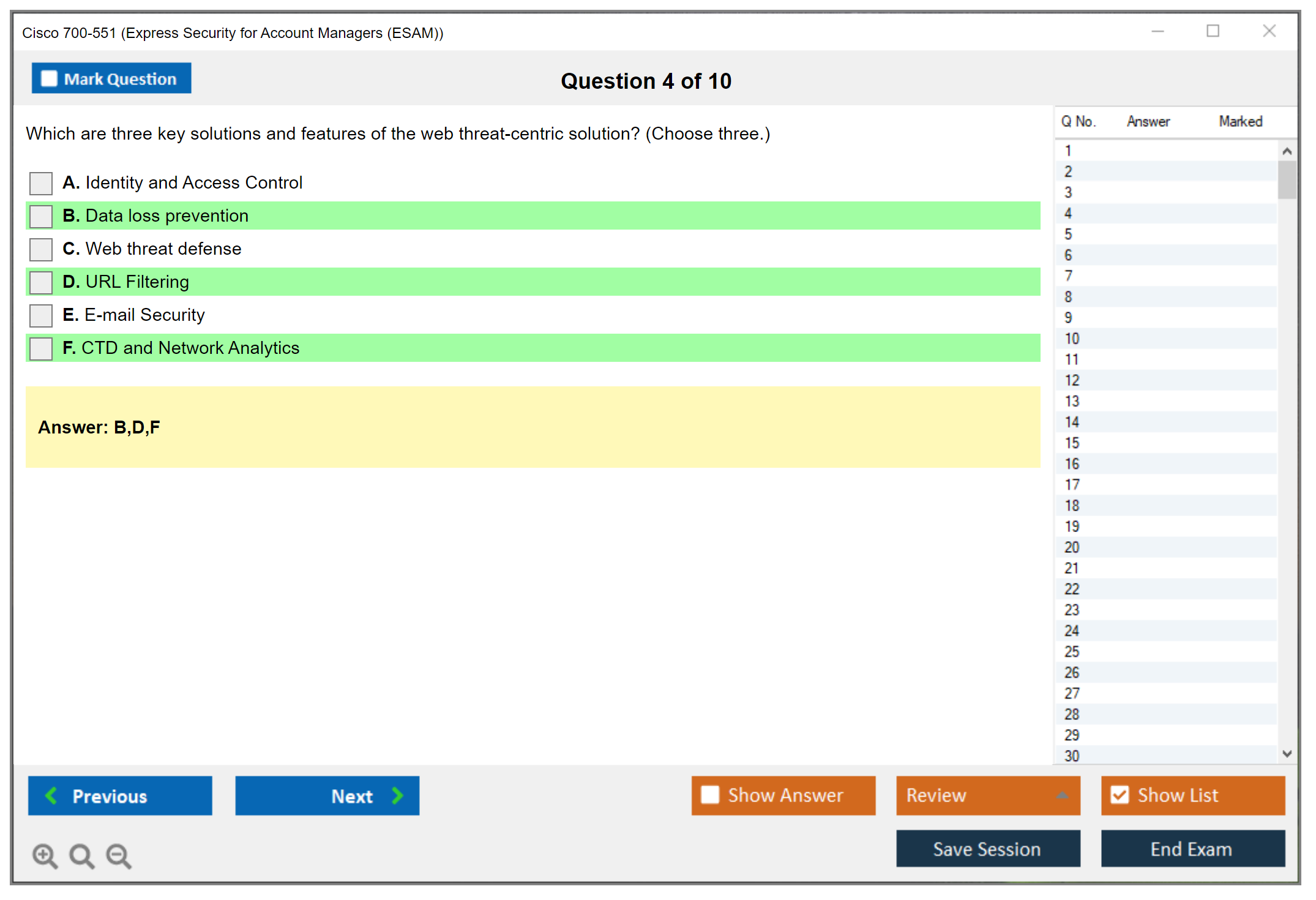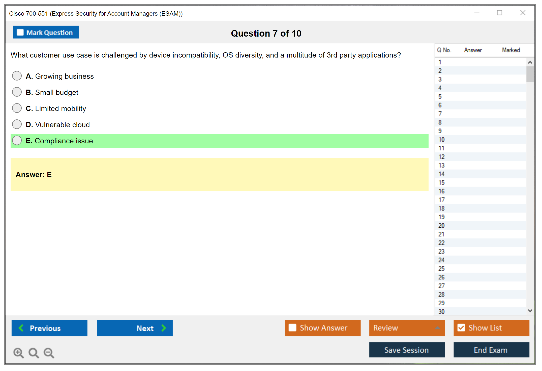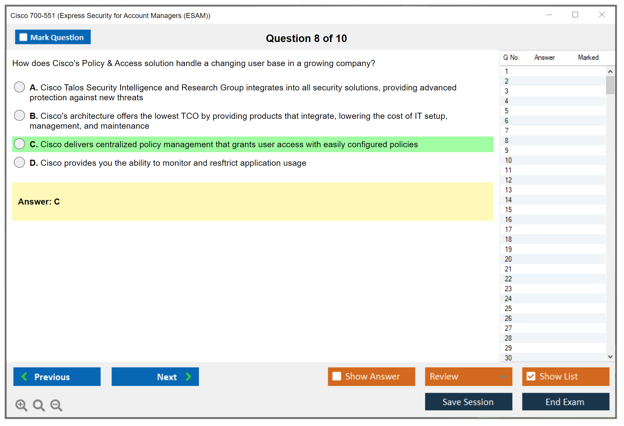 Impressed by the quality of DumpsBoss's 700-551 exam prep! The detailed explanations and user-friendly interface made studying efficient and effective. Trust DumpsBoss to lead you to certification success!
