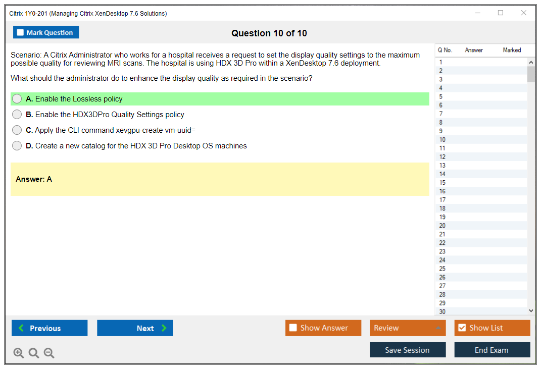 The Citrix 1Y0-201 exam is a certification test for IT professionals who manage and support Citrix XenDesktop 7.6 environments. It covers various aspects of installation, configuration, and management of the XenDesktop solutions.