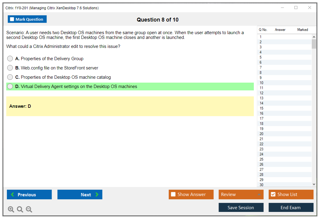 The Citrix 1Y0-201 exam, also known as Managing Citrix XenDesktop 7.6 Solutions, is designed to validate the knowledge and skills required to manage and support a Citrix XenDesktop 7.6 environment.