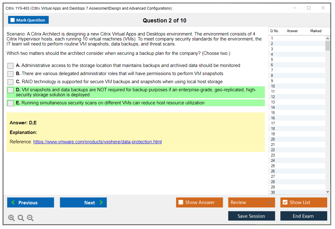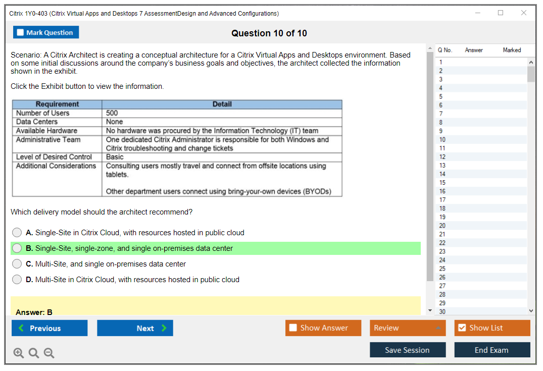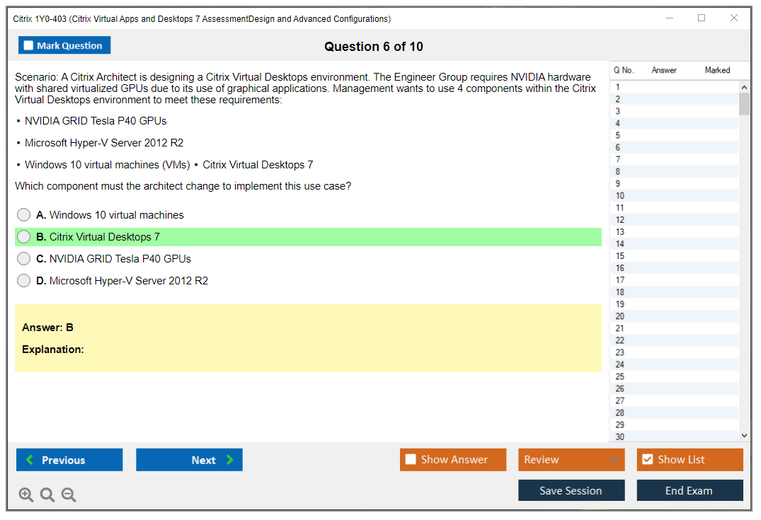 The Citrix 1Y0-403 exam, also known as Citrix Virtual Apps and Desktops 7 Assessment Design and Advanced Configurations, is designed to test the knowledge and skills required to assess, design, and configure advanced settings for Citrix Virtual Apps and Desktops 7 environments.